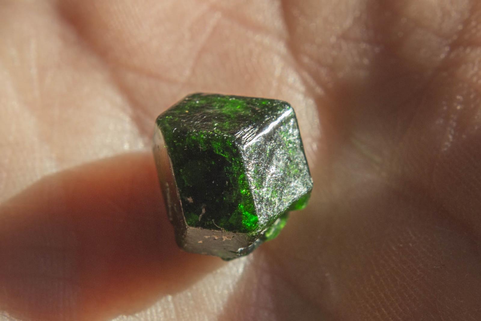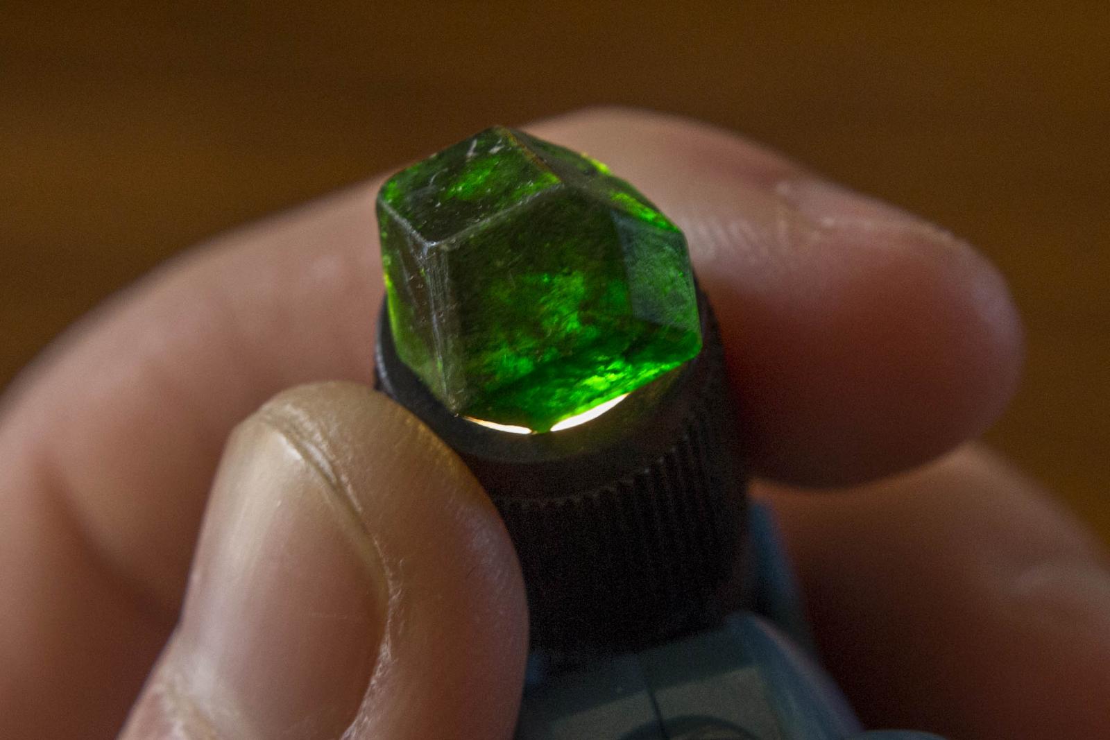16. Bonjour, J'ai perdu l'étiquette de ce grenat vert et j'ai un doute sur sa variété. Je ne pense pas que ce soit un hydrogrossulaire ni un andradite démantoïde car la couleur verte est trop profonde. Cela ne peut pas être de l'uvarovite non plus car il est de grande taille. Du coup je pensais à un grenat tsavorite, à moins que ce soit un grenat andradite sans être un démantoïde.. Qu'en pensez vous ?