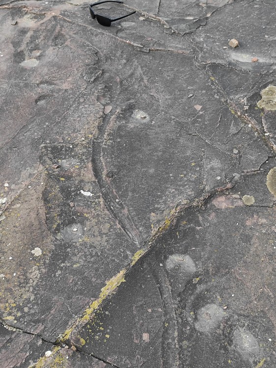 Hop! Bon d'accord se ne sont pas vraiment des Dinosaures et d'ailleurs bien avant ceux là car daté du Permien (250 Millions d'Années)! Petit aperçu des traces de Pas et de reptation (queue) du Quartier Saint Sébastien dans le Var (83) à Saint Raphael. Ces derniers gros lézards auraient plus eu l'apparence de Salamandre Géante (1-2m de long). Environ 3 pistes différentes composées d'une centaines de traces. Hélas le site n'a pas été conservé et reconnu comme il aurait put/du au vus de sa valeur de Patrimoine et malgré les efforts d'une associations... Découverte de la dalle en 1988 par François Ballestra. Relativement détérioré lors de ma visite en fin 2023, photos Nicolas BORN. -