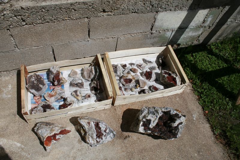 15. Pièce d'hématoïde avec fluorine trouvée le premier mai faisant 30cm sur 18cm avant nettoyage après nettoyage