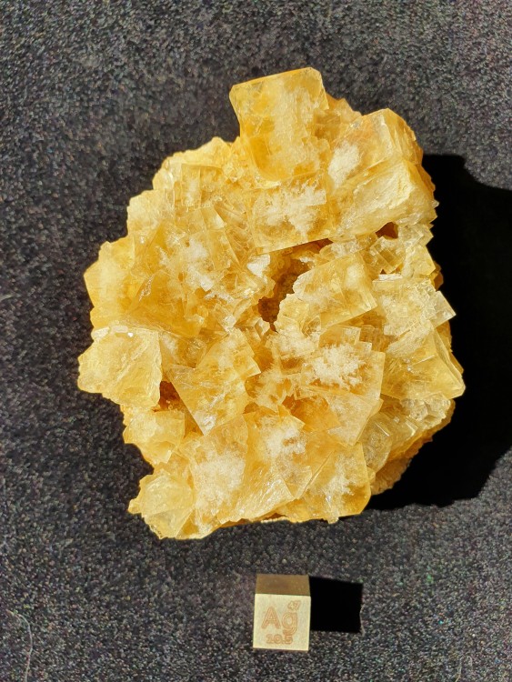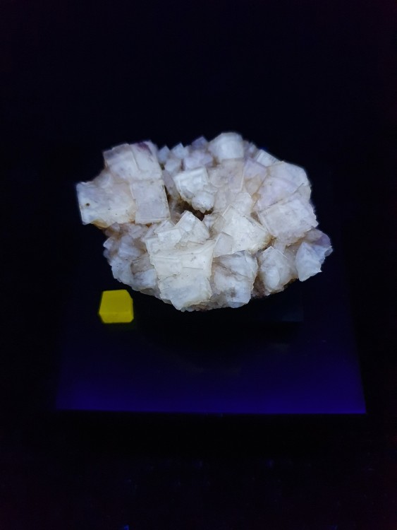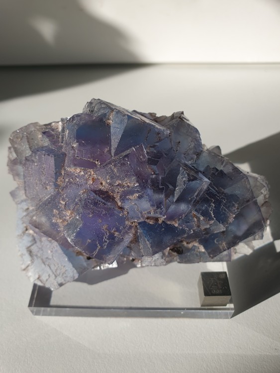11. Hello une fluorite bleue (Illinois USA). Cube de 1cm pour l'échelle.