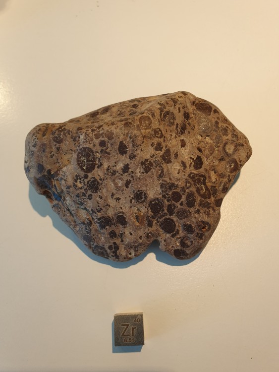8. bonjour, pas de chondres visibles, pas de croute de fusion, densité trop petite, clairement ce n'est pas une météorite. il s'agit d'une roche, la forme ovoïde vient probablement de l'érosion éolienne, je pense à du grès.