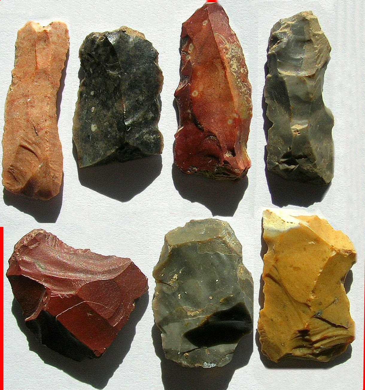Bonsoir Pachy, voila qu'est bien résumé. mais il y a dans la connaissance des différents gîtes des lacunes énormes, et il faudrait vraiment des géologues connaissant à fond la région pour répondre à la question. Néanmoins tu as très bien cerné le problème. Une autre question m'intéresse. Voici quelques photos de quartz du même site. Est-ce que la différence qui existe entre leur érosion et dans leur couleur permet de dire qu'ils viennent eux aussi d'endroits divers? Merci d'avance pour les réponses que vous pourriez apporter. J'ai constaté en cassant des cailloux de quartz qu'ils contenaient très souvent pas mal d'ocre, ce qui pourrait éventuellement expliquer l'intéret que le quartz pouvait avoir à ces époques là (couleurs corporelles et funéraires) en dehors d'un effet décoratif. Kroumy.