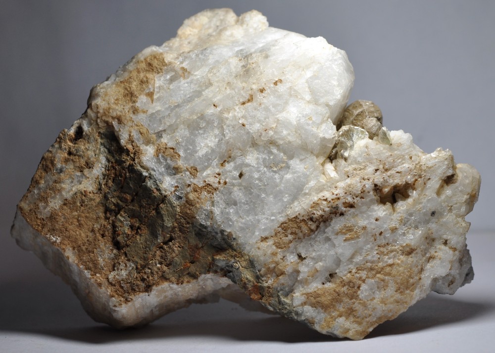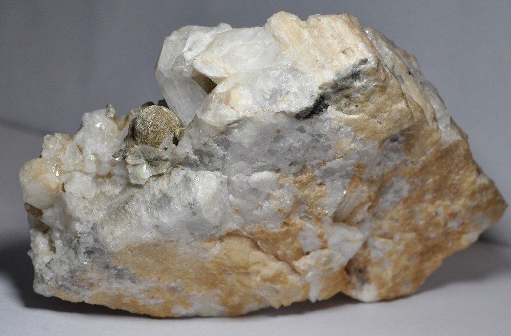 Bonsoir Probablement une brèche de faille en contexte granitique. Le minéral laiteux de remplissage semble siliceux. -