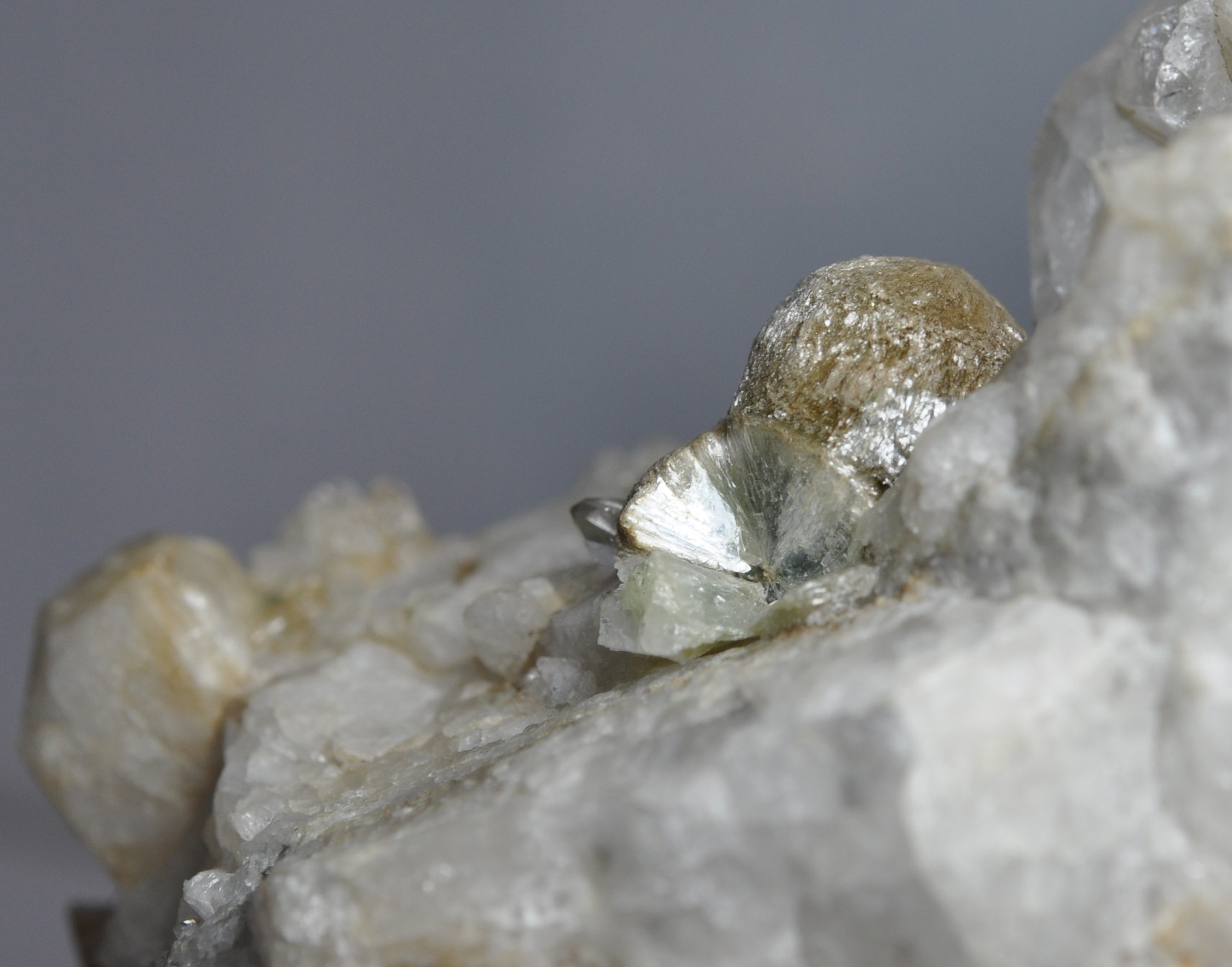 Merci! Il y a deux coupes transversales sur la photo n°4 de 2 cristaux émergeant près des 2 extrémités du grand prisme couchés. Les cristaux ne sont pas libres et il n'y a pas de terminaisons valables. Une idée du gisement? -
