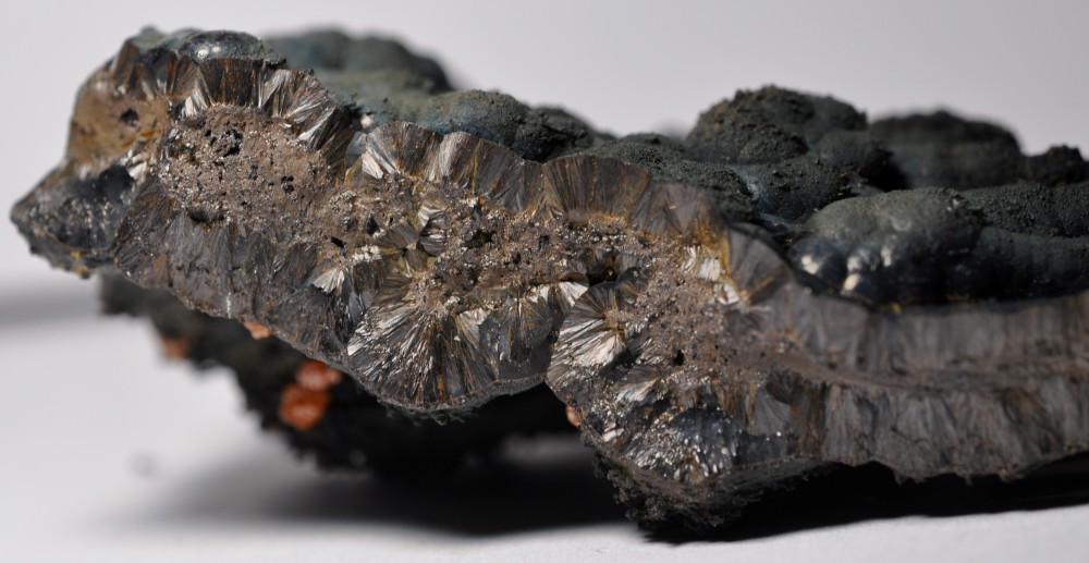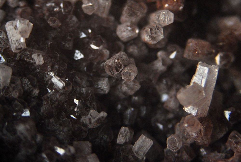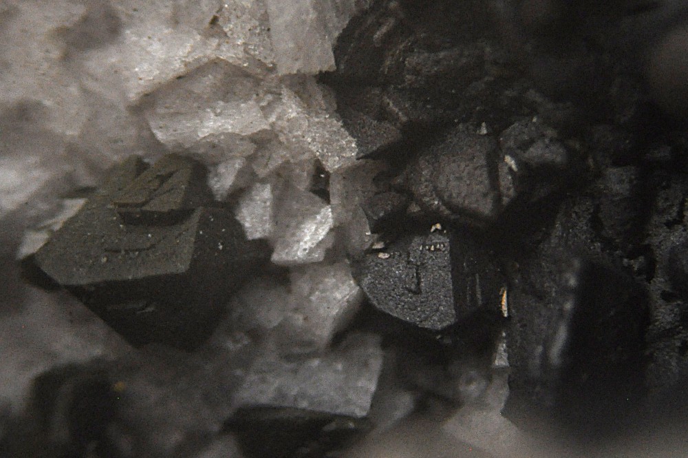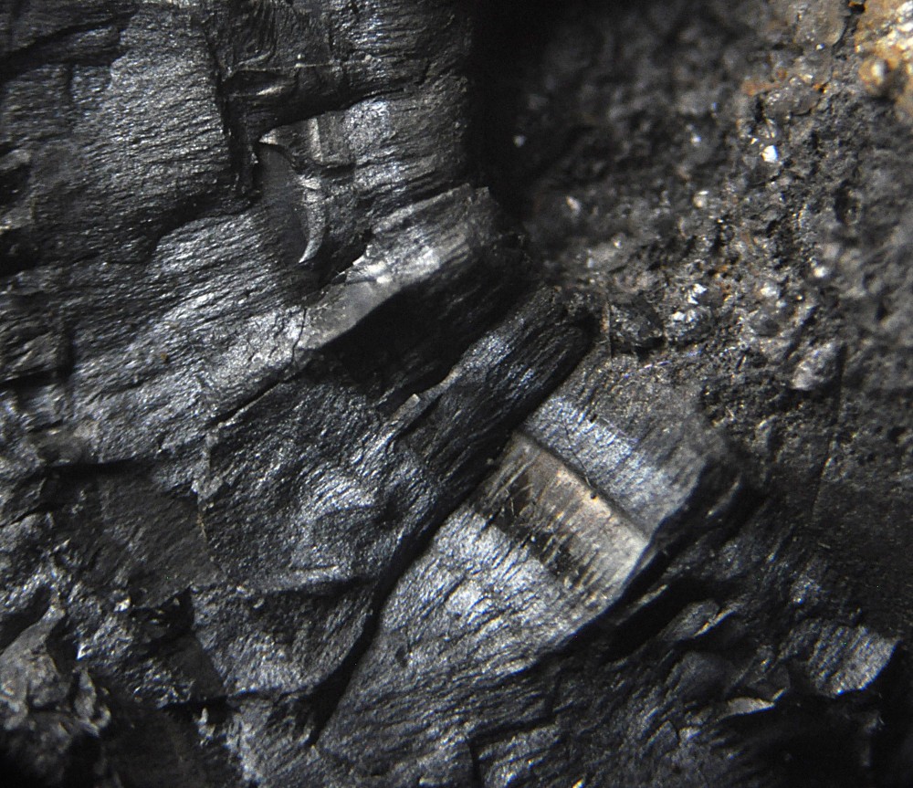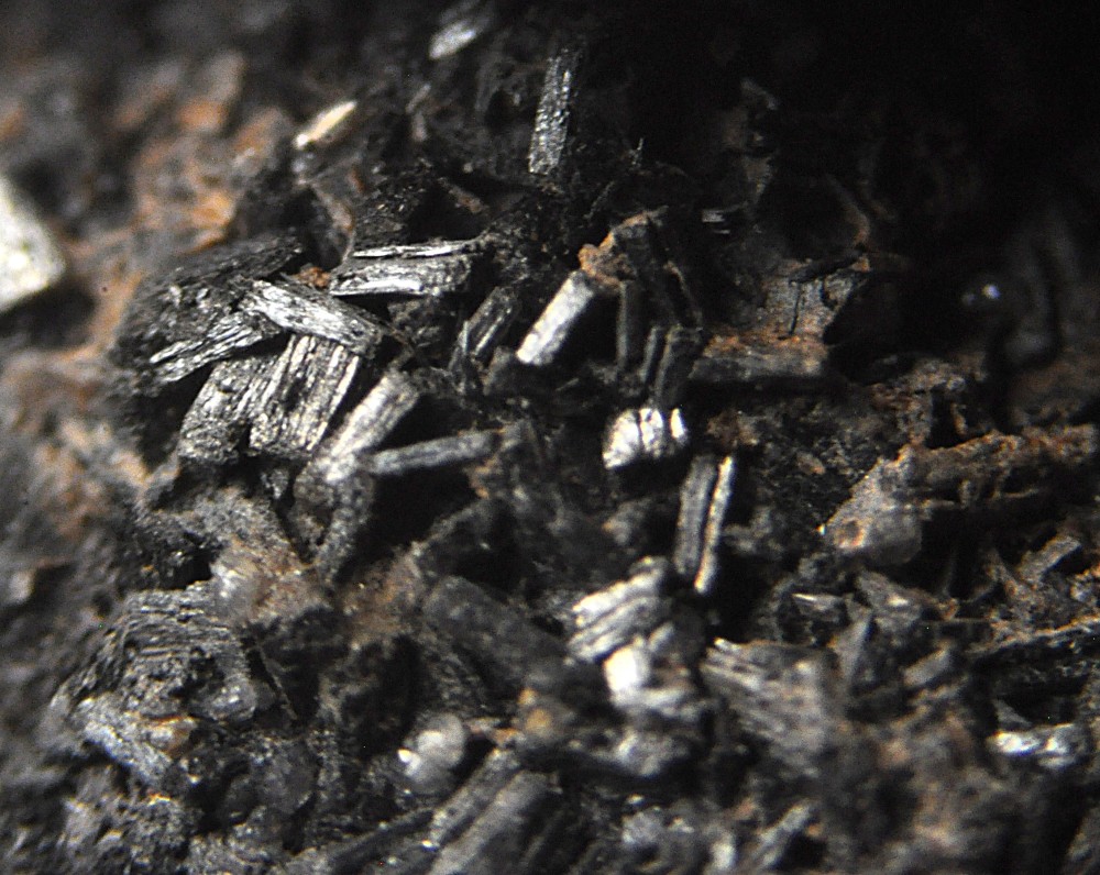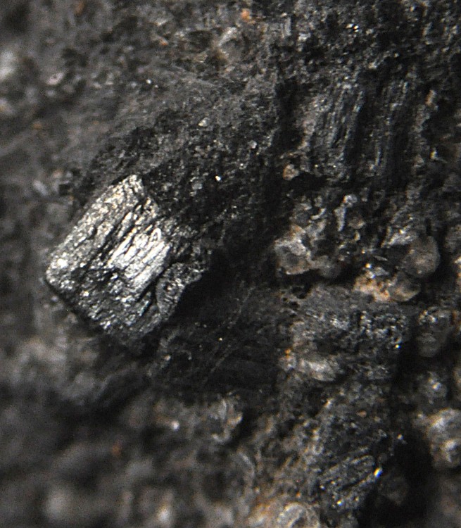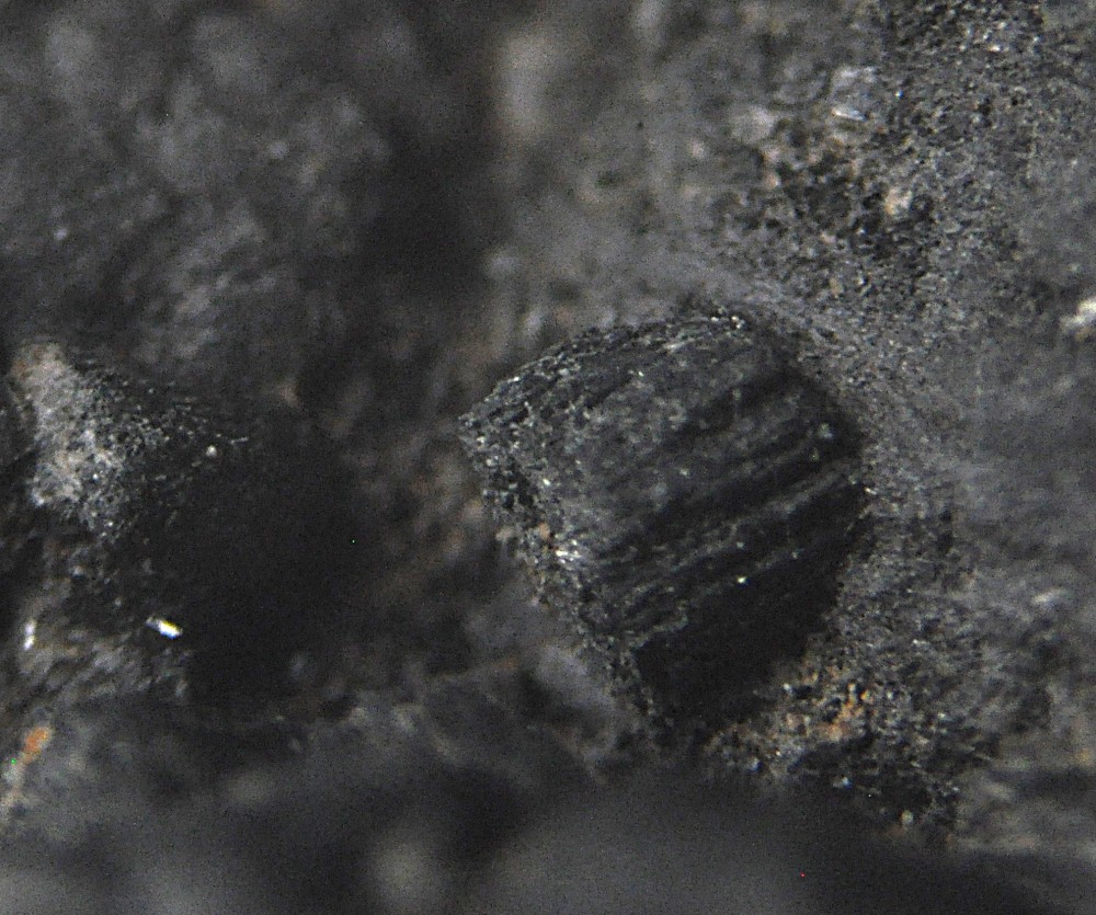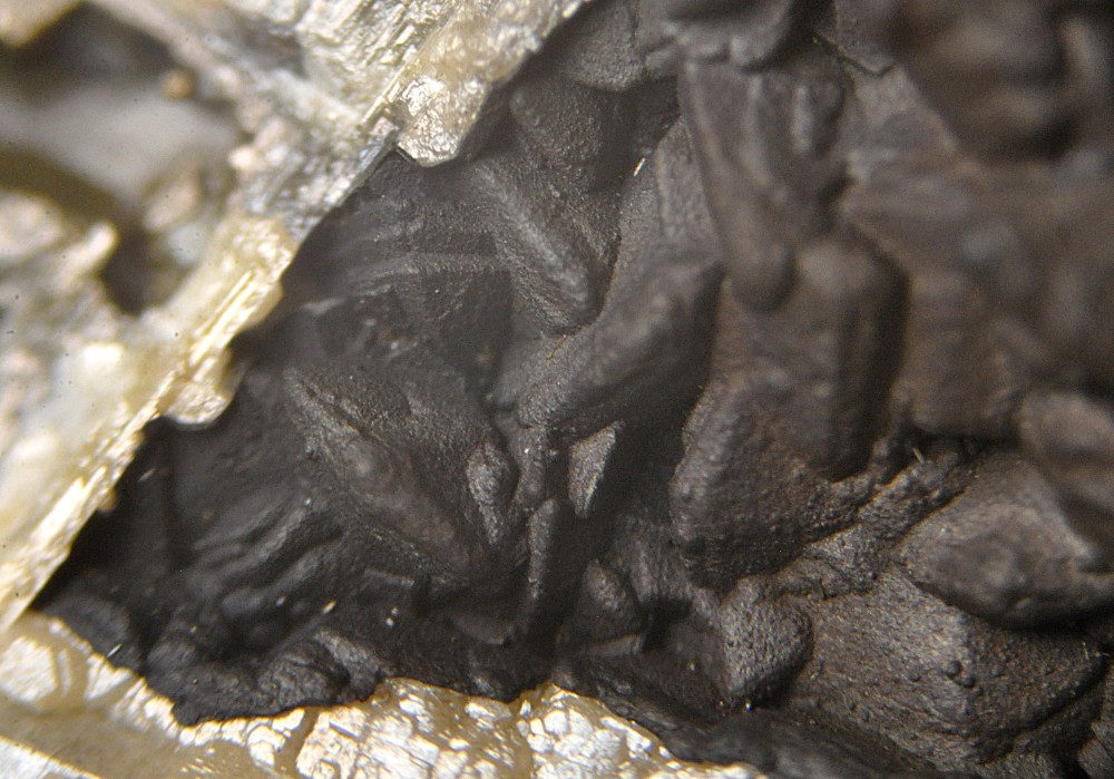 Merci. C'est la présence de microcristaux à faces carrées dans la masse (photo 3) qui m'évoquait la Pyrolusite. Deux autres photos sous bino: -