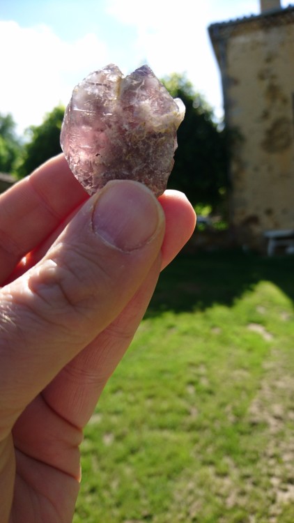 Bonjour, j'ai trouvé, près une Langeac, un cristal de fluorine en conditions d'observations normales elle parait noire mais quand je fais passer le soleil à travers, elle tire sur le violet transparent ce que je souhaiterais savoir, c'est si je peux la qualifier d'antozonite (fluorite fétide) ou simplement de fluorite violette photos ci jointes, merci ! -