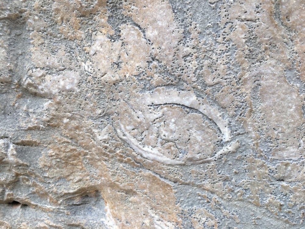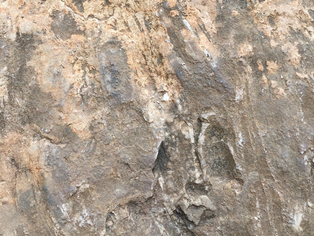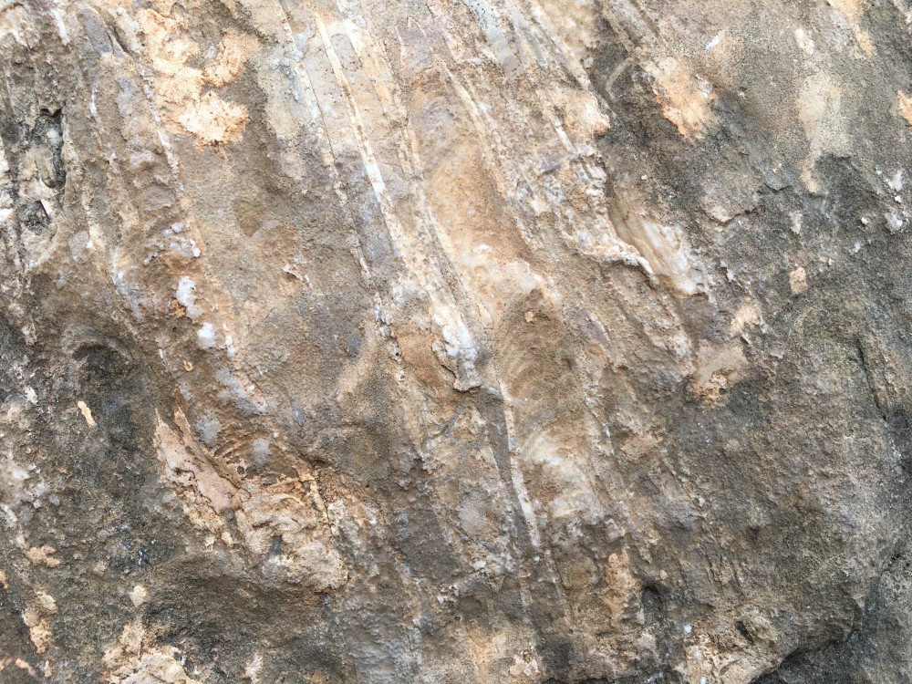 Peut-etre un autre element: il y a beaucoup de roches comme cela là dans les alentours, je suppose que c'est une formation rocheuse et non un fossile car il y en a souvent. Cela ressemble un peu à mon échantillon... Couleur similaire, des creux dans la roche etc...Serait-ce la même chose? -