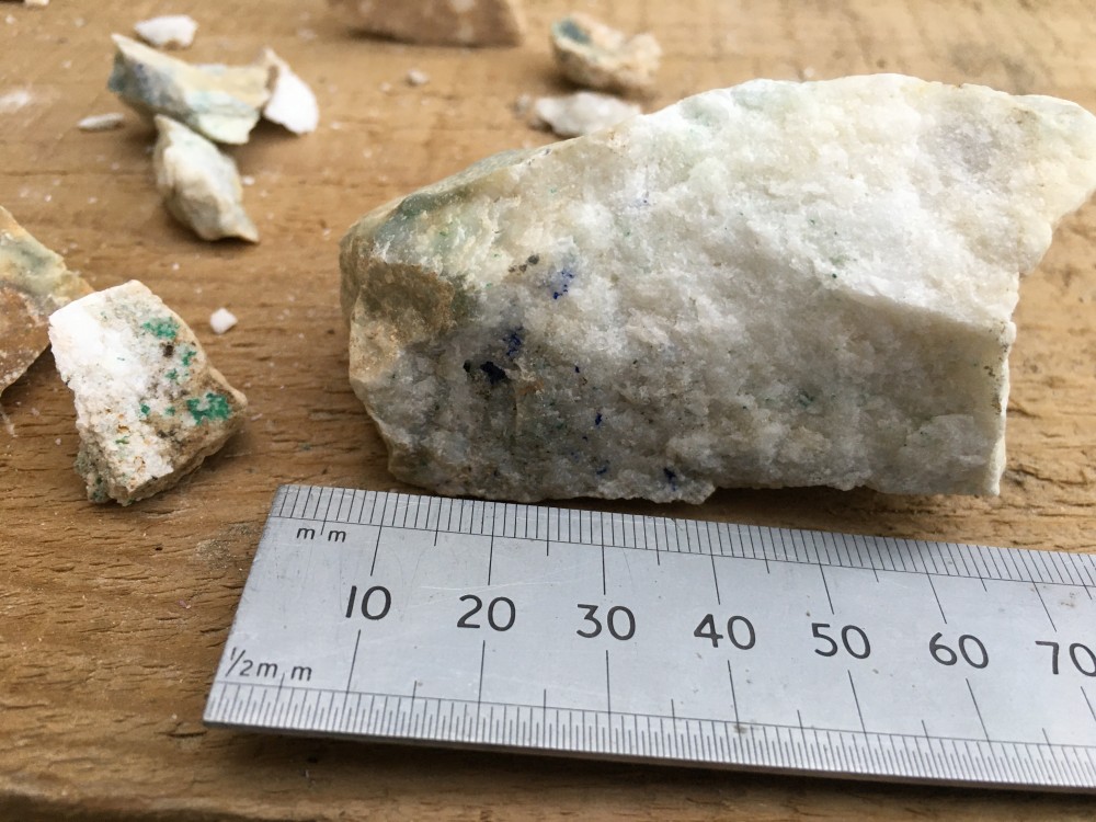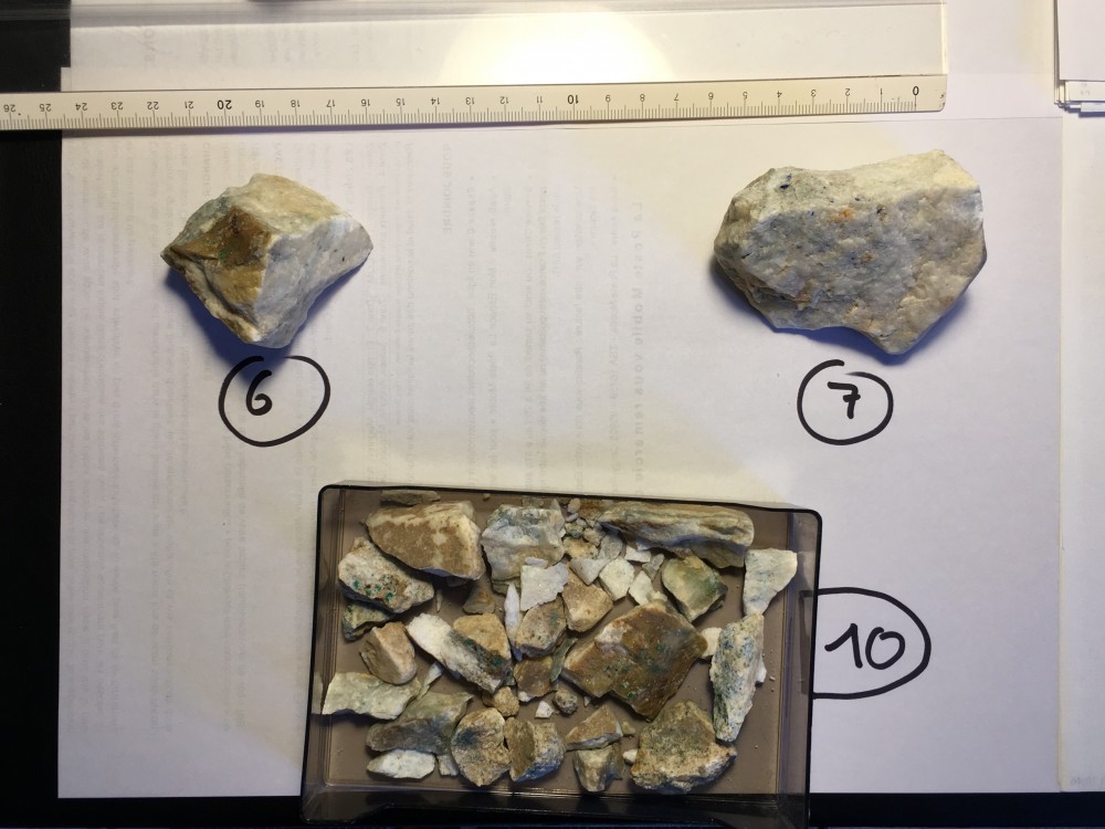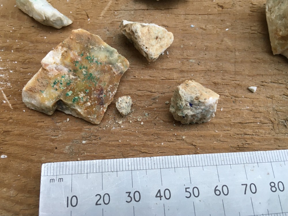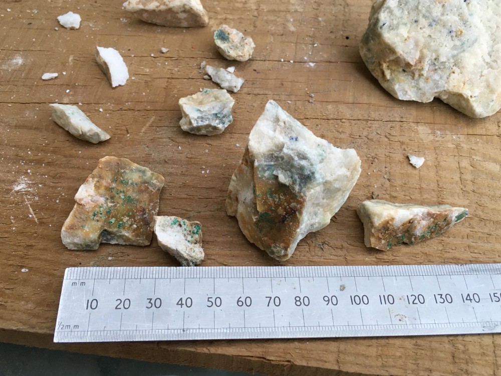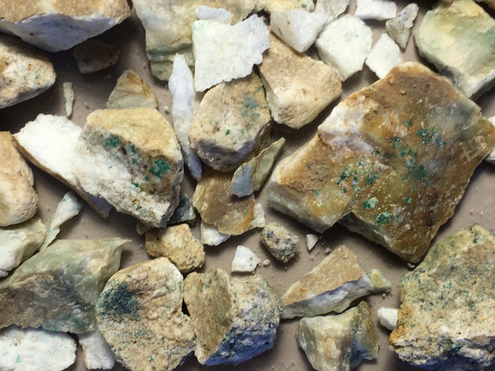 Une question: j'ai trouvé encore pas mal de très petits cristaux de Malachite et AZURITE dans des bloques de quarts... Y a-t-il une méthode pour les extraire? (je les casse avec un marteau ce qui fait apparaitre des cristaux.. mais bof... ;)C d'autres techniques? PS: de si petits bouts de cristaux ont-ils quelconque valeur "pécuniaire'? Merci
