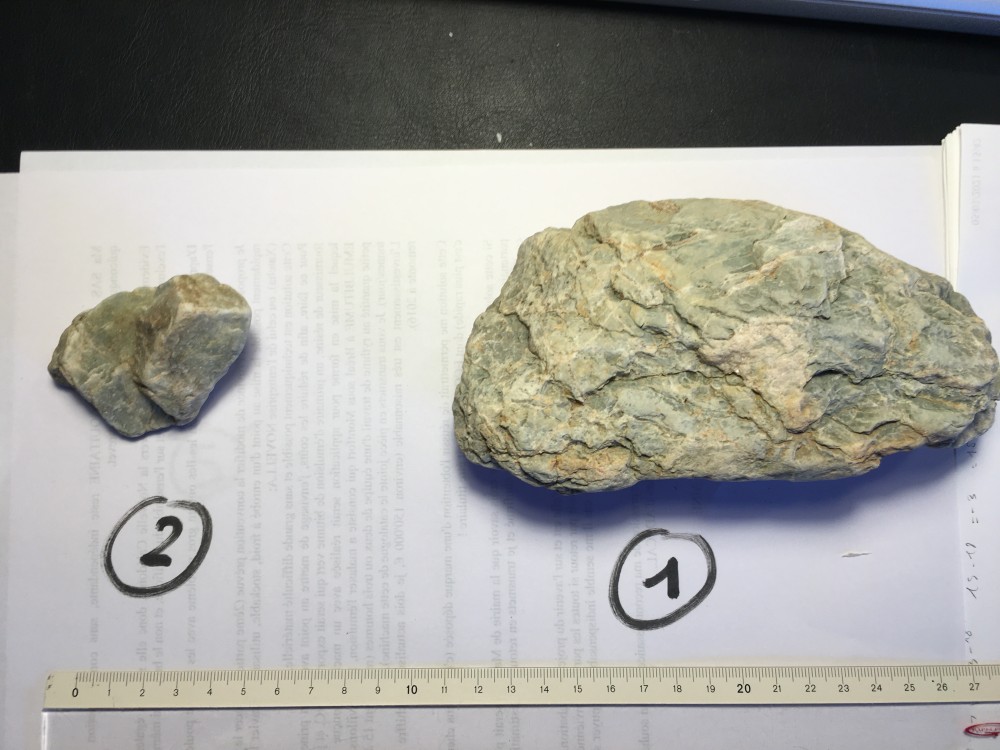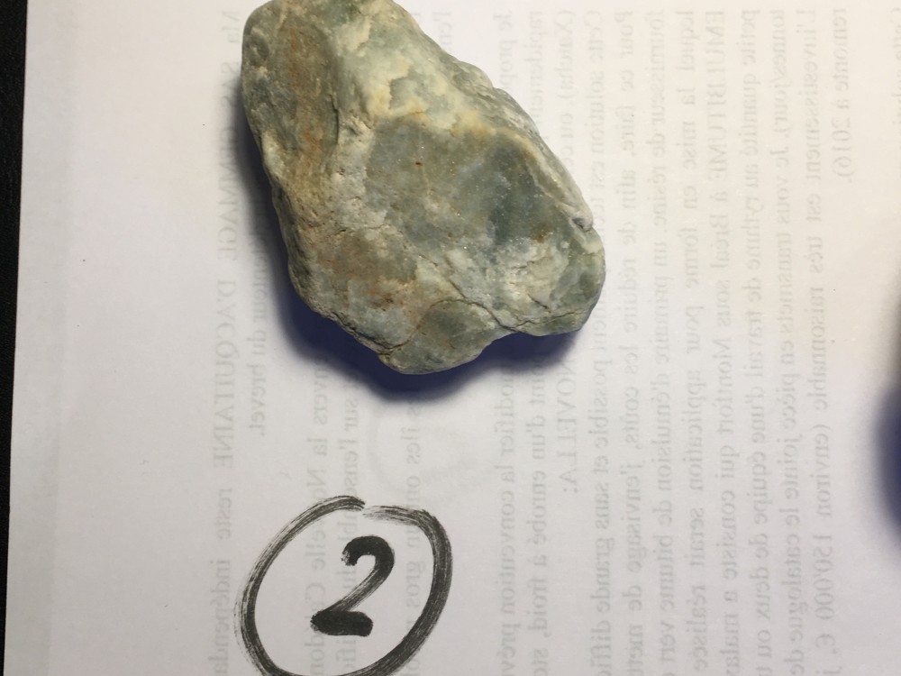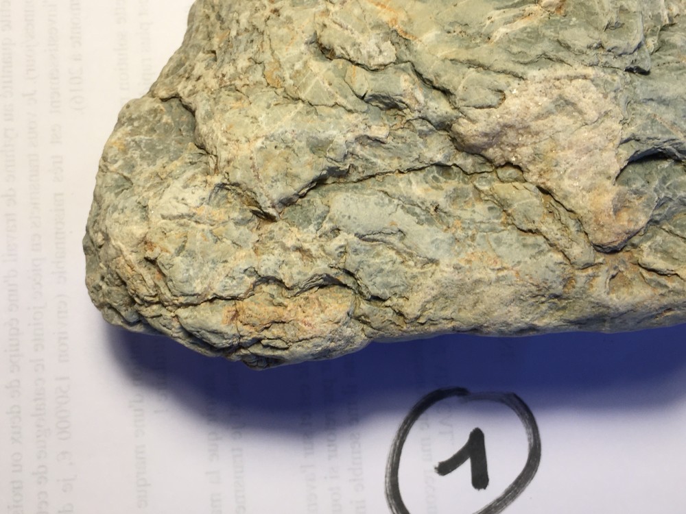 Bonjour, avec le peu d'information, pouvez-vos me dire quelle est la nature de cette pierre svp? Trouvée dans les Corbières, Padern 11, en bord de rivière, le Verdouble, une pierre verdâtres, il y a de la malachite dans le coin, mais ce n'est pas le même vert. Ce ne sont pas des cristaux de malachite isolé. (a la limite disséminé ..?) Merci!! PS: Et pensez-vous que sa dureté permettrait d'en couper en face pour les polir...? -