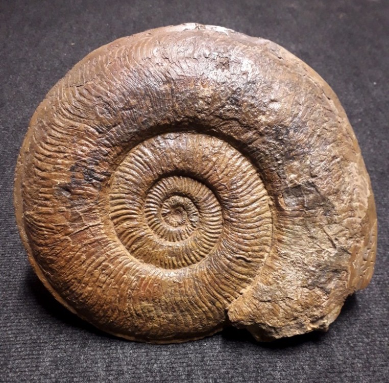 Aalénien: Planammatoceras tenuiinsigne 13,8 cm et Ericites fallifax 8 cm (avec l'ouverture) + une petite Leioceras en arrière plan)