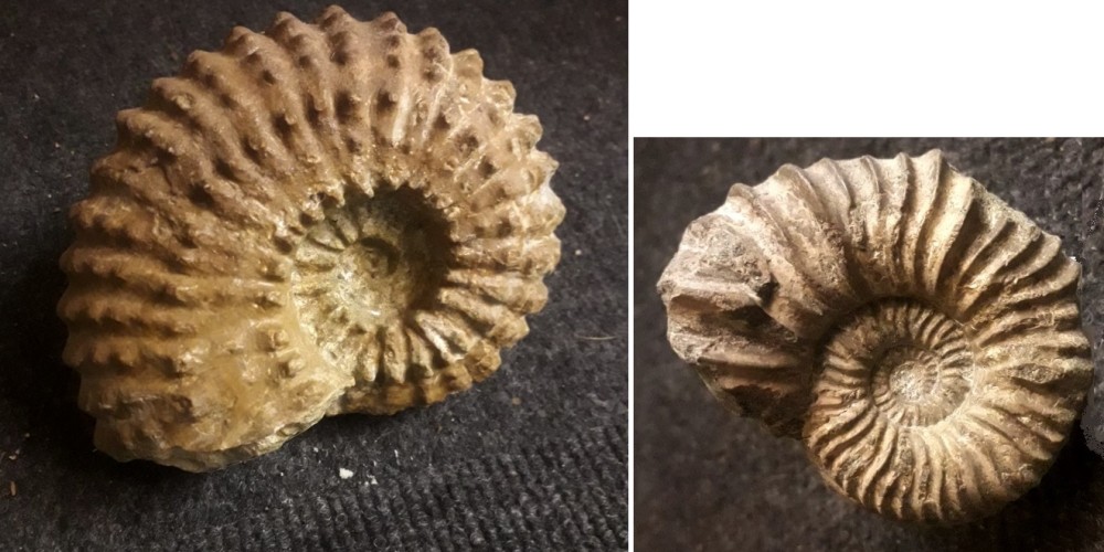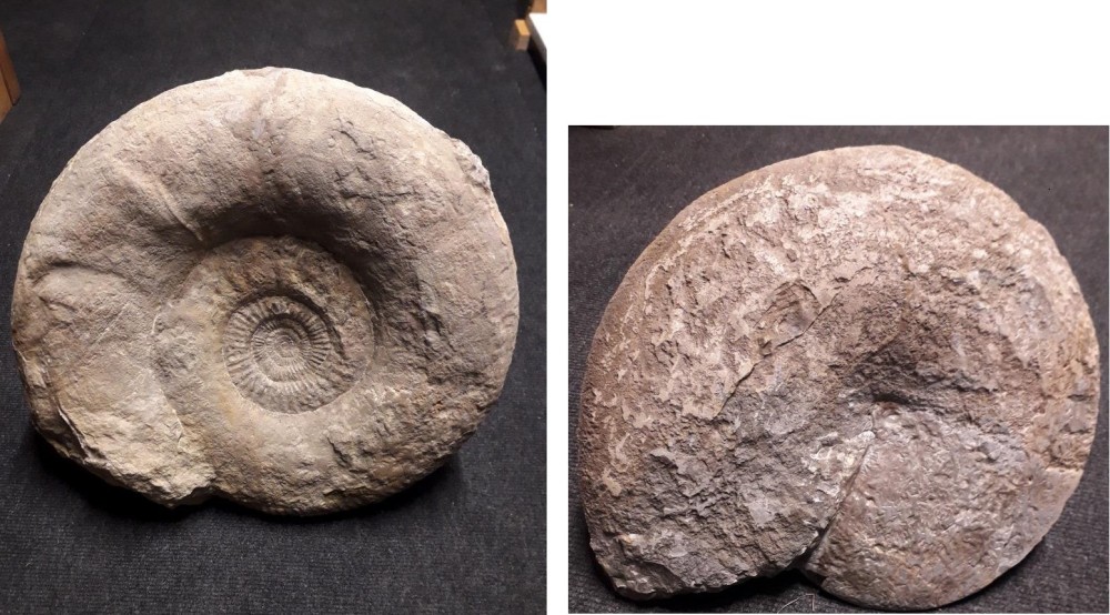 Oxfordien: Perisphinctes sp 23 cm et Euaspidoceras perarmatum 10,5 cm
