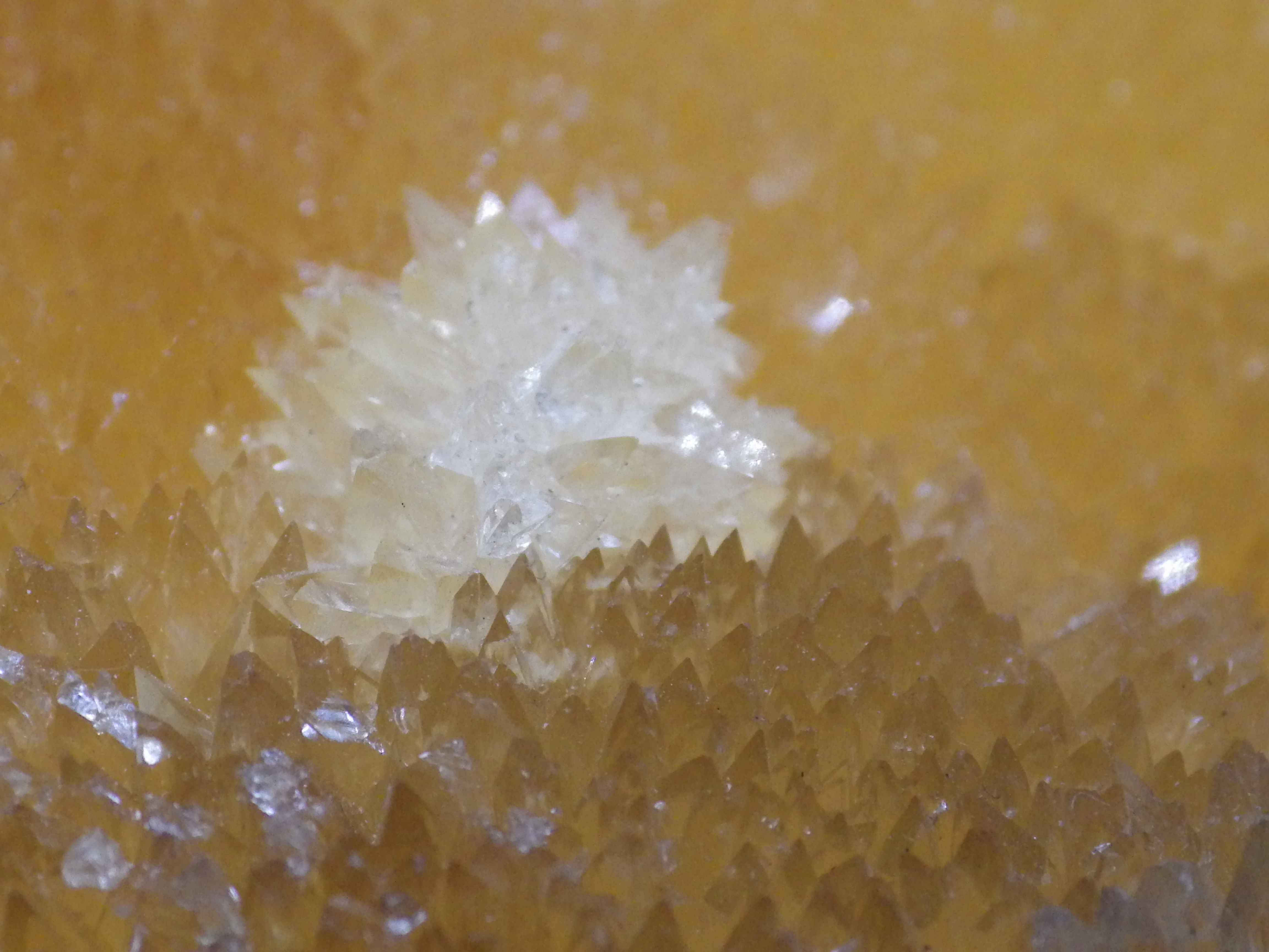 19. Bonjour, Ce minéral est jaune miel et n'a pas l'aspect d'une améthyste chauffée Les tests sont difficiles car les petits cristaux sont trop fragiles mais je pense que ça ne raye pas le verre, ce qui pourrait éliminer la citrine ... Elle provient surement du brésil Désolé pour l'éclairage et la netteté des photos ...