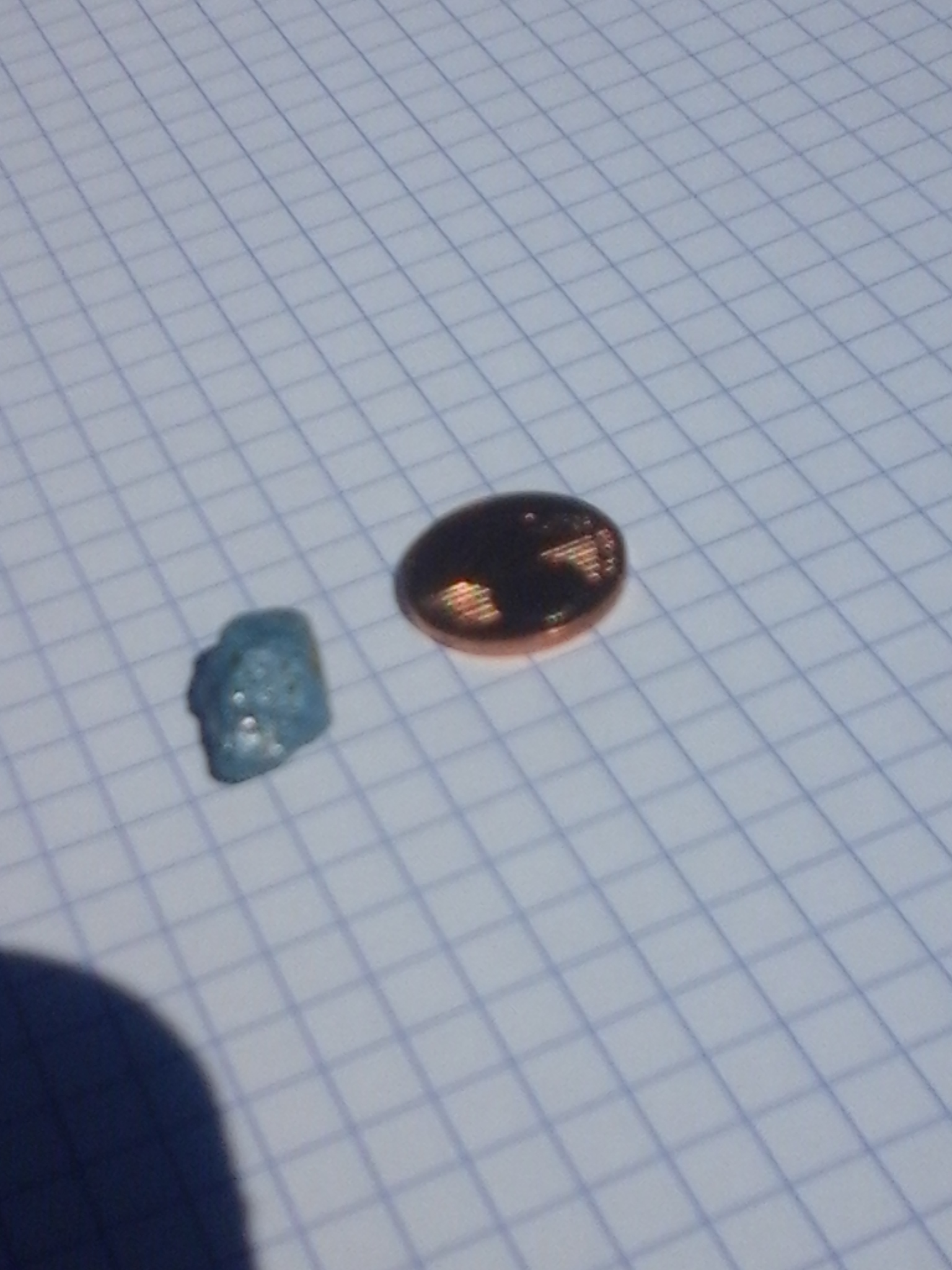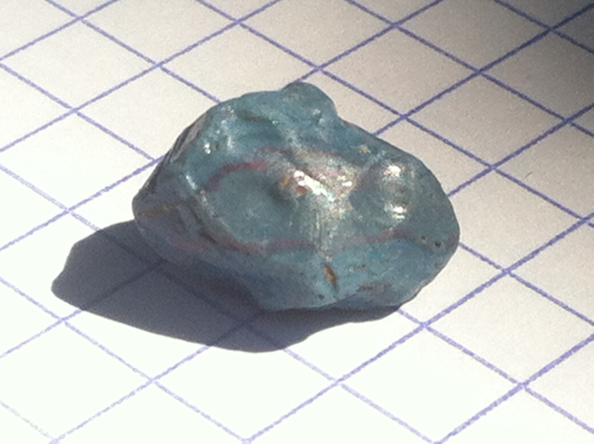 Sa couleur bleu turquoise, les deux ou trois veines rouges font penser à l'Agate, et la brillance, l'aspect de la matière fait qu'on pourrais sans doute la polir pour en faire une joli bague.