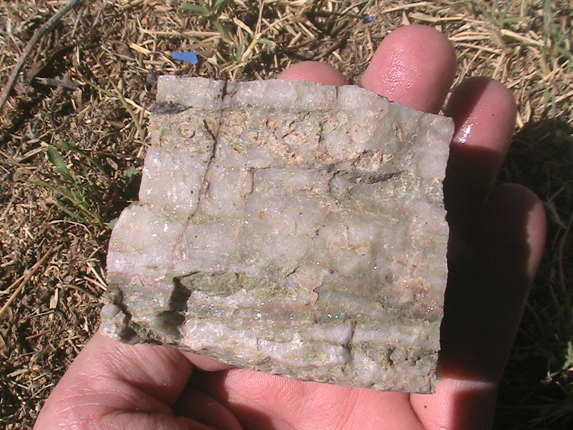 17. il m'a été conseillé d'ouvrir un sujet sur les roches corse a identifier, il est vrai que c'est plus pratique, ca evite la dispersion. j'ouvre le sujet ici, mais s'il n'est pas approprier, on peu le changer de place. je commence donc avec une petite ballade sur les hauteurs d'ajaccio, en direction de saint antoine. il y a une carriere de diorite a amphibole assez jolie ( je mettrai des photos si ça vous interesse ). sur ces affleurements dans les roches détritique, j'ai vu cette plaque vert bleuté avec un effet métallique quand on la regarde au soleil. je pense a du micas vert apres quelques recherches, sauf que les cartes géol ne mentionnent rien la dessus. vous pouvez confirmer si c'est du mica ?? de plus, il me semble qu'il y a des toutes petites amphiboles aussi a confirmé. je suis completement nul coté identification. test hcl : pas de réaction sur la plaque verte bleuté n'est pas rayé par une piece de cuivre est rayé par la pointe d'un couteau raye pas le verre s'effrite en feuille tres mince merci .