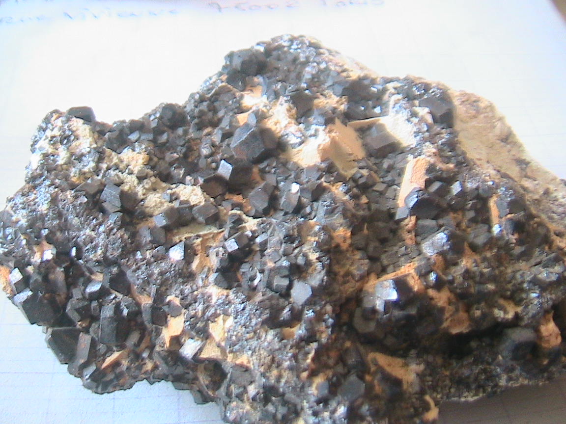 calcaire; magnétite, pyrite et roche brun clair caramel .