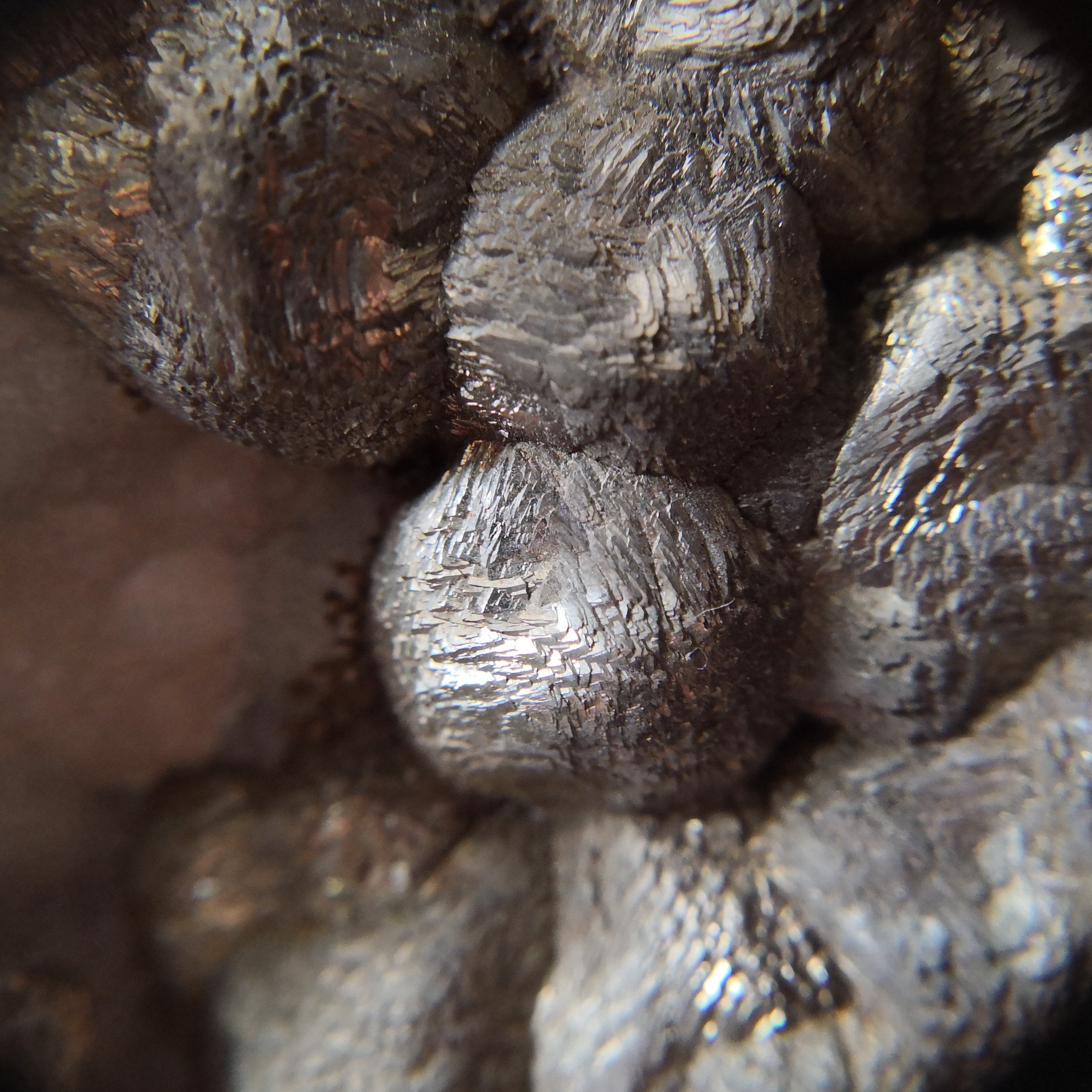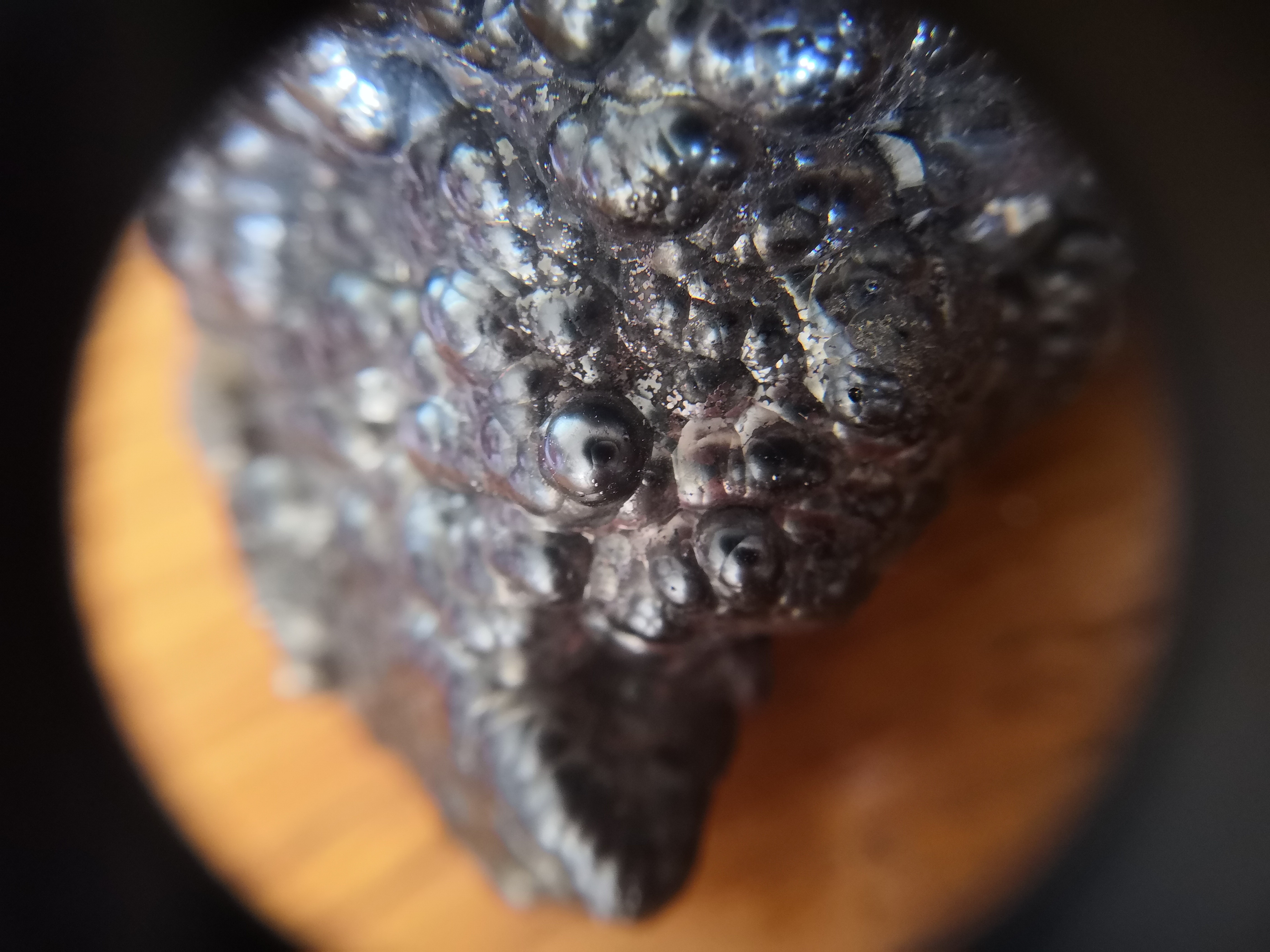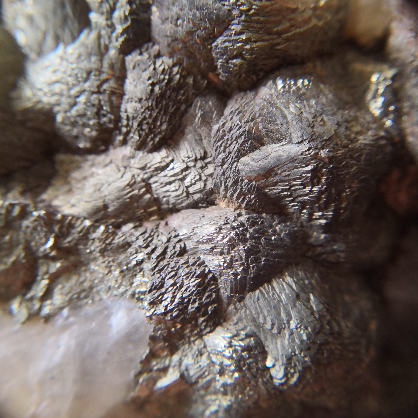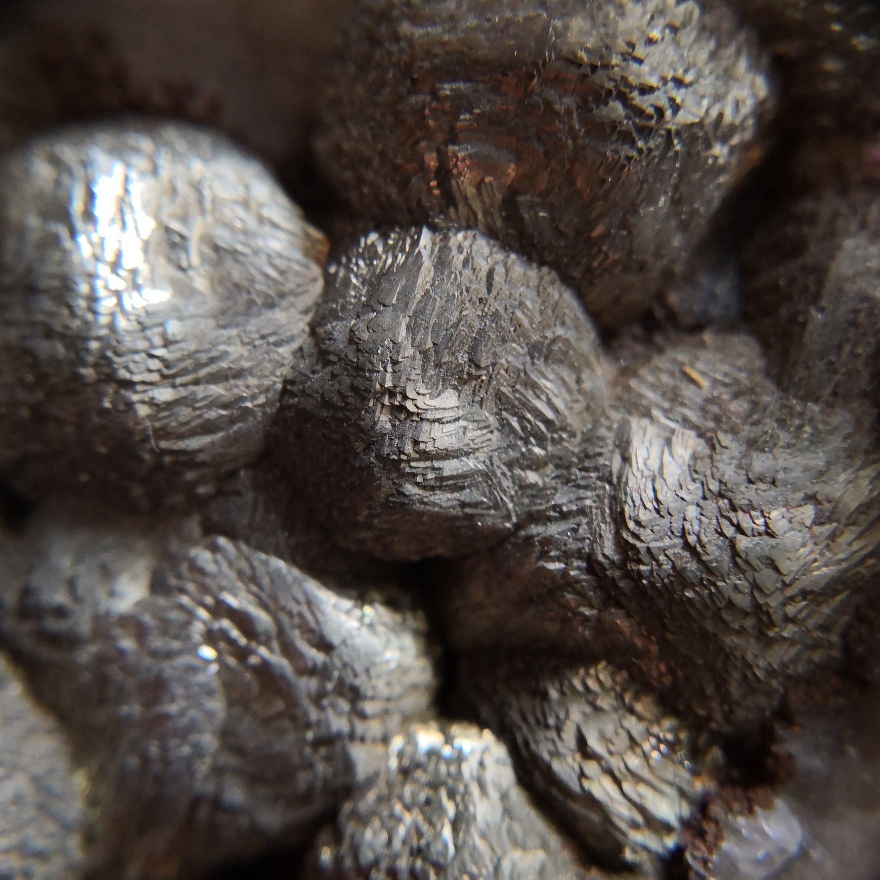 Je me permet d'en rajouter 3 autres. Elles etaient accompagnées de ces étiquettes : Voici la première, que je suppose être la pièce anglaise, mais qui me semble plutôt être une hématite botryoïdale (une qu'on peut trouver dans le Cumberland), non seulement par son aspect mais aussi parce qu'elle raye le verre (donc dureté supérieure à une goethite. Néanmoins j'aimerais bien avoir votre avis. Voici les deux pièces suivantes, qui me semblent effectivement être des goethites. La première : (dureté environ 5 cette fois) Et la dernière, assez particulière car irisée, accompagnée de calcite, et formant de fines concretions (pas de test de dureté cette fois). Photos difficiles à prendre avec mon équipement rudimentaire. (L'irisation est peut etre due à la goethite elle même ou à un voile de cristaux de pyrite, mais sans ma binoculaire, impossible de distinguer des cristaux cubiques ou autre, en tout cas rien de visible à la loupe x10) Merci d'avance pour vos suggestions ! -