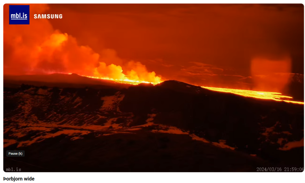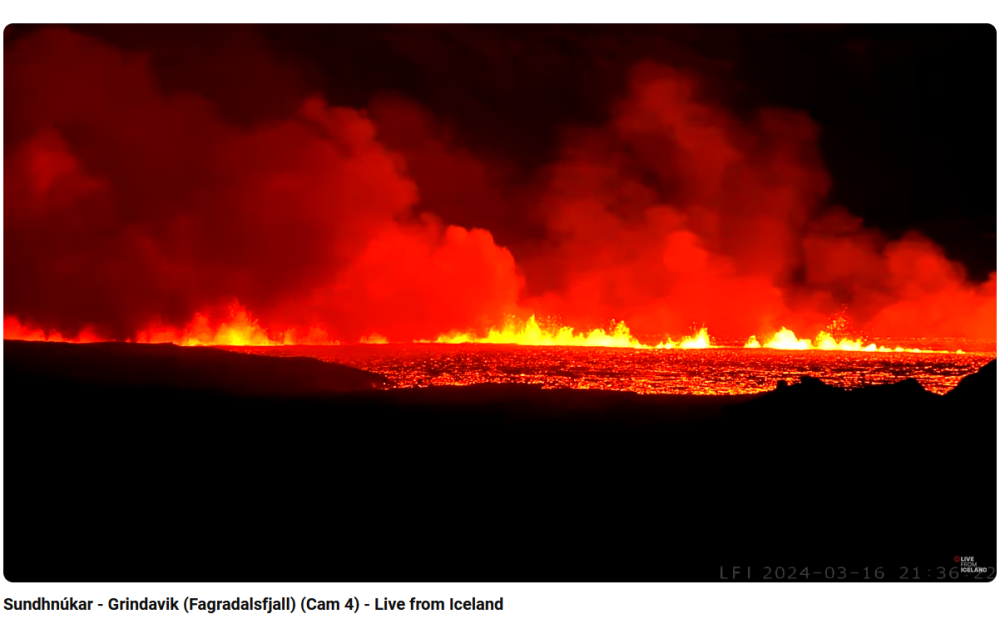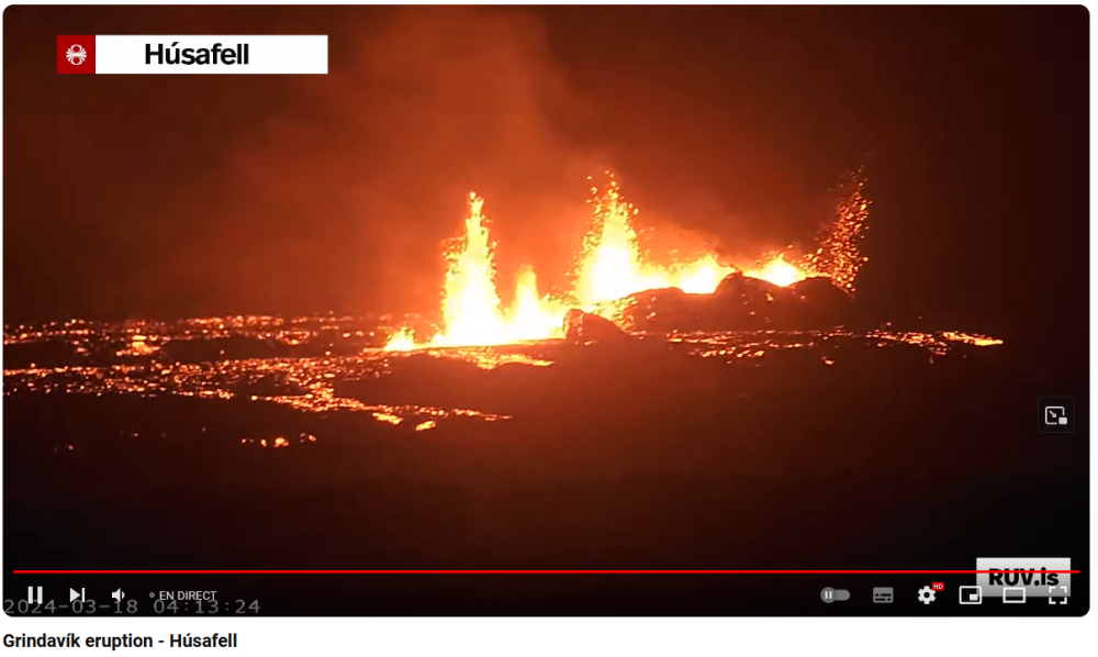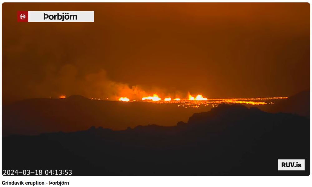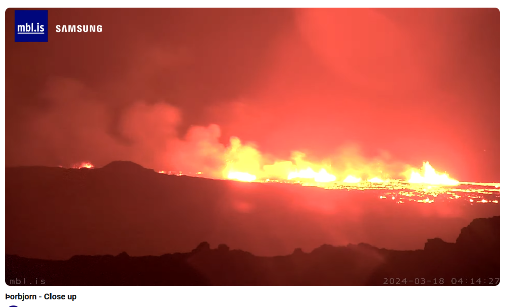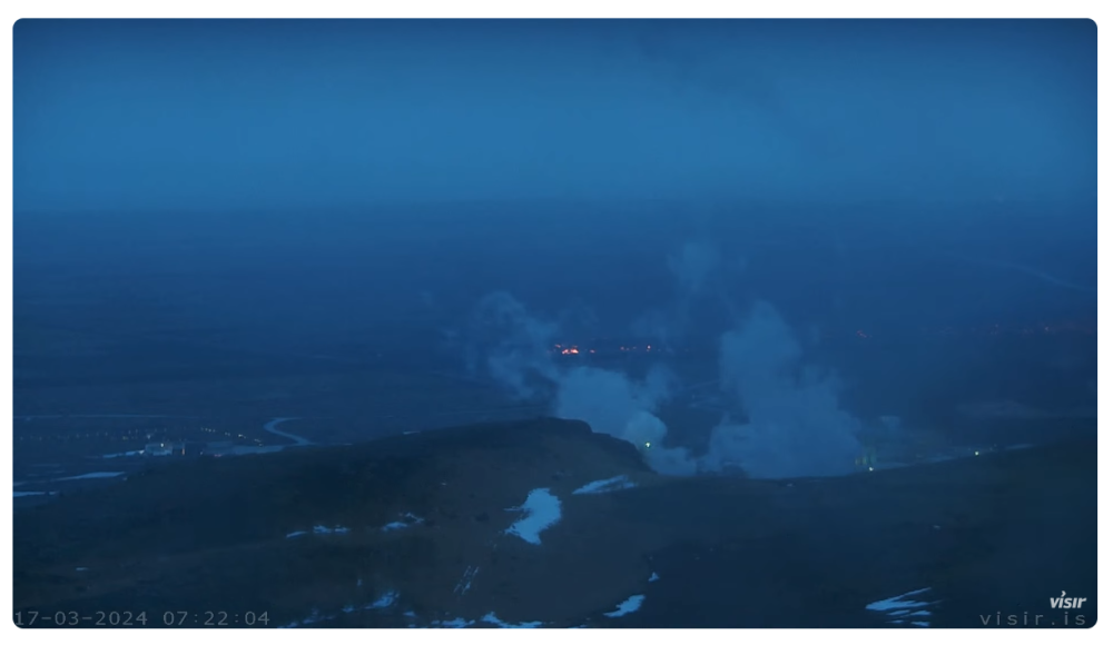 4. a vue de webcam ce matin, a mon avis c'est encore une éruption qui ne va pas durer bien longtemps. ah, et toujours a vue de webcam, il y as une coulée qui est en chemin vers le Blue Lagoon ( encore une fois ) et une autre qui est partie pour essayer de se faire un morceau de Grindavik.
