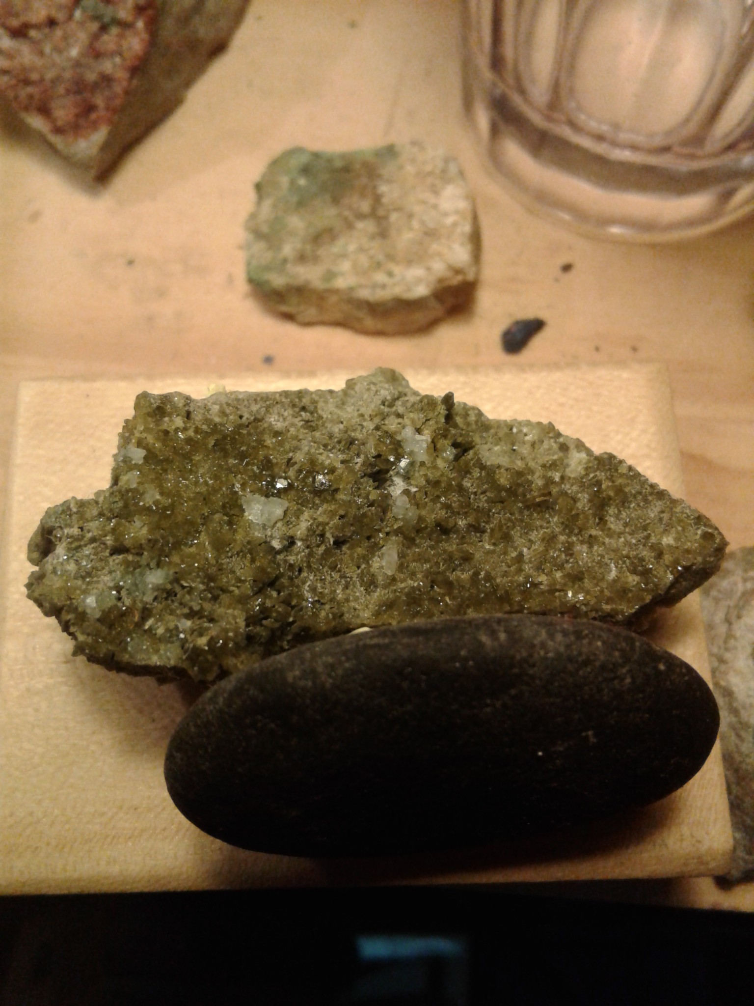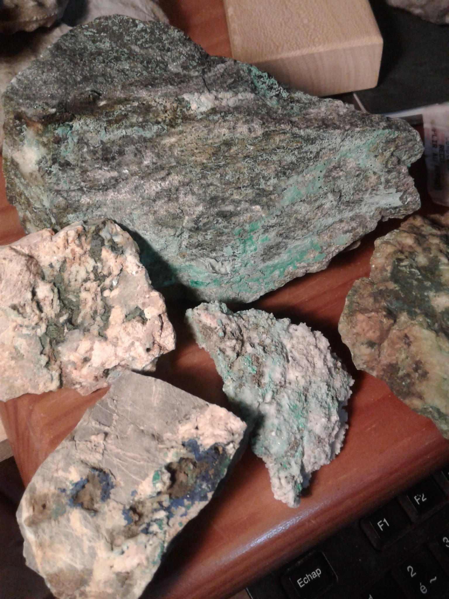 19. Voilà de la malachite mal acquise en Maurienne.. . à moins que tu ne confondes avec de l'épidotes: ou chlorite: là sur du quartz! François