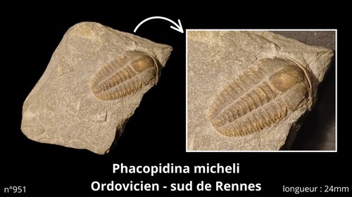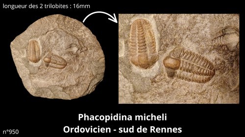 950 et 951 sont des Ellipsocephalus hoffi du Cambrien moyen de Bohême.