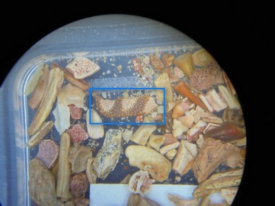 Pas facile à dire, mais la faible minéralisation ne va pas en ce sens. Allez, encore une série en attendant des fossiles du Permien supérieur ! Une fricassée de Bourbonnella guilloti du Permien inférieur (Autunien) de Bourbon, espèce très proche de Aeduella blainvillei. Aeduella blainvillei du Permien inférieur (Autunien) de Buxières (la même espèce qu'à Muse). Conservation classique de ce gisement, c'est-à-dire pas vraiment top vue de loin. Et, comme pour les acanthodiens, une vue rapprochée montre des détails très fins. Permien inférieur (Autunien) de Buxières. Autre détail d'un autre spécimen. Permien inférieur (Autunien) de Buxières. Là, on ne rigole plus. Du carnassier qui devait se nourrir des Aeduella : Progyrolepis heyleri (maxillaire). Permien inférieur (Autunien) de Buxières. Progyrolepis heyleri (mandibule). Et là, on rigole encore moins avec ces requins d'eau douce (les plus grands connus atteignaient les 3 m): Dent de Xenacanthus ou Orthacanthus ou genre proche, caractéristique avec ses trois cuspides (la petite est cassée). Permien inférieur (Autunien) de Buxières. Et l'aiguillon de la bête, insérée à l'arrière du crâne (Orthacanthus). Permien inférieur (Autunien) de Buxières. Longueur 220 mm. Et pour changer, du matériel du Pflaz, en Allemagne. Paramblyterus ? (Permien inférieur du Pflaz) petit, mais esthétique. Uronectes (Permien inférieur du Pflaz) -
