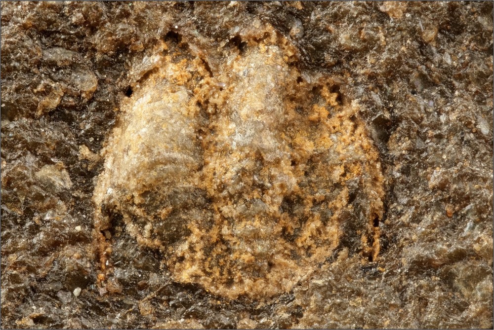 4. Certaines empreintes sont quand même de grande qualité. Œil de Taihungshania miqueli, nodule de l'Ordovicien inférieur de Montagne Noire, largeur de la photo 9 mm