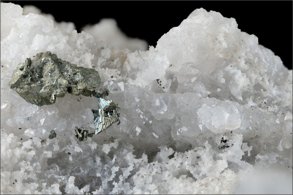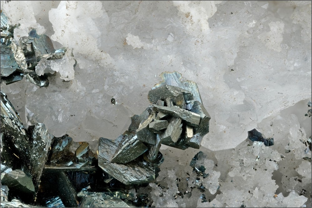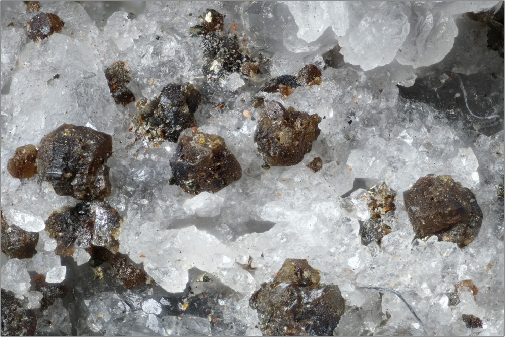 21. Oui. Il y a des cristaux de quartz indiscutables ça et là. Donc on a du quartz, de la sphalérite et ?