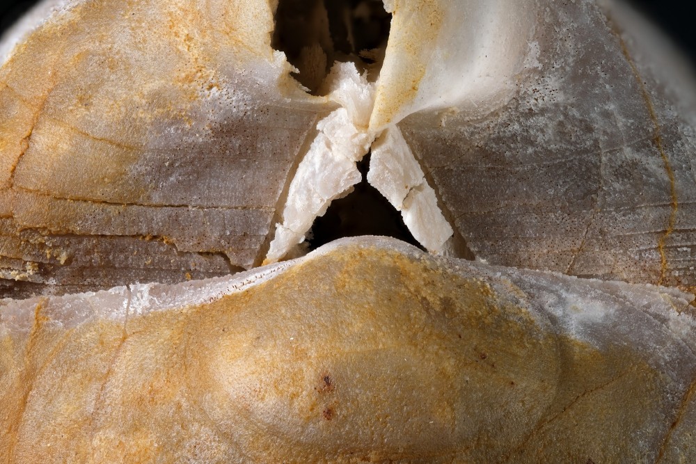 15. Un détail que je n'avais jamais vu : l'ouverture triangulaire de la coquille est recouverte par une (ou deux ?) plaques. Largeur de la photo 21.5 mm