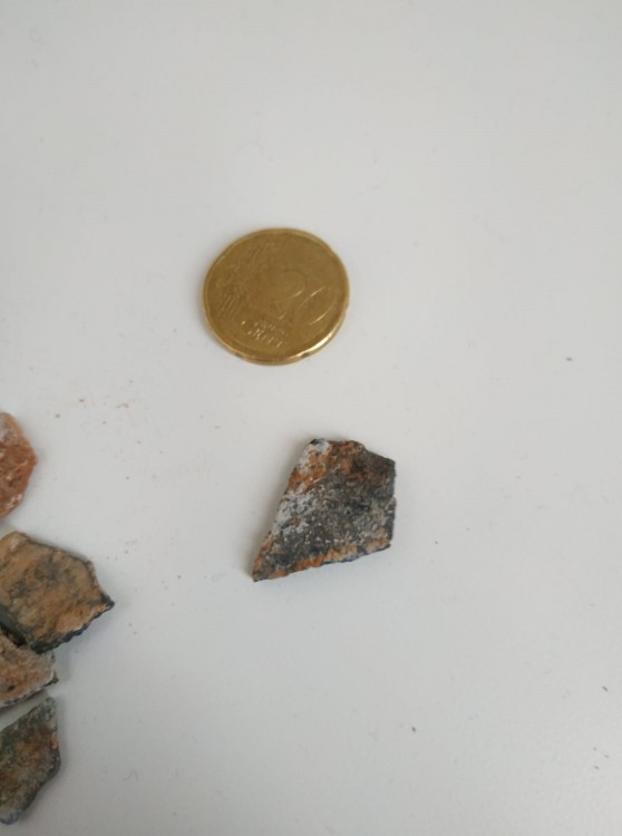 Mais en remontant le filon, je vois sur la droite une petite (20cm de large tout au plus) pegmatite et l'observe.