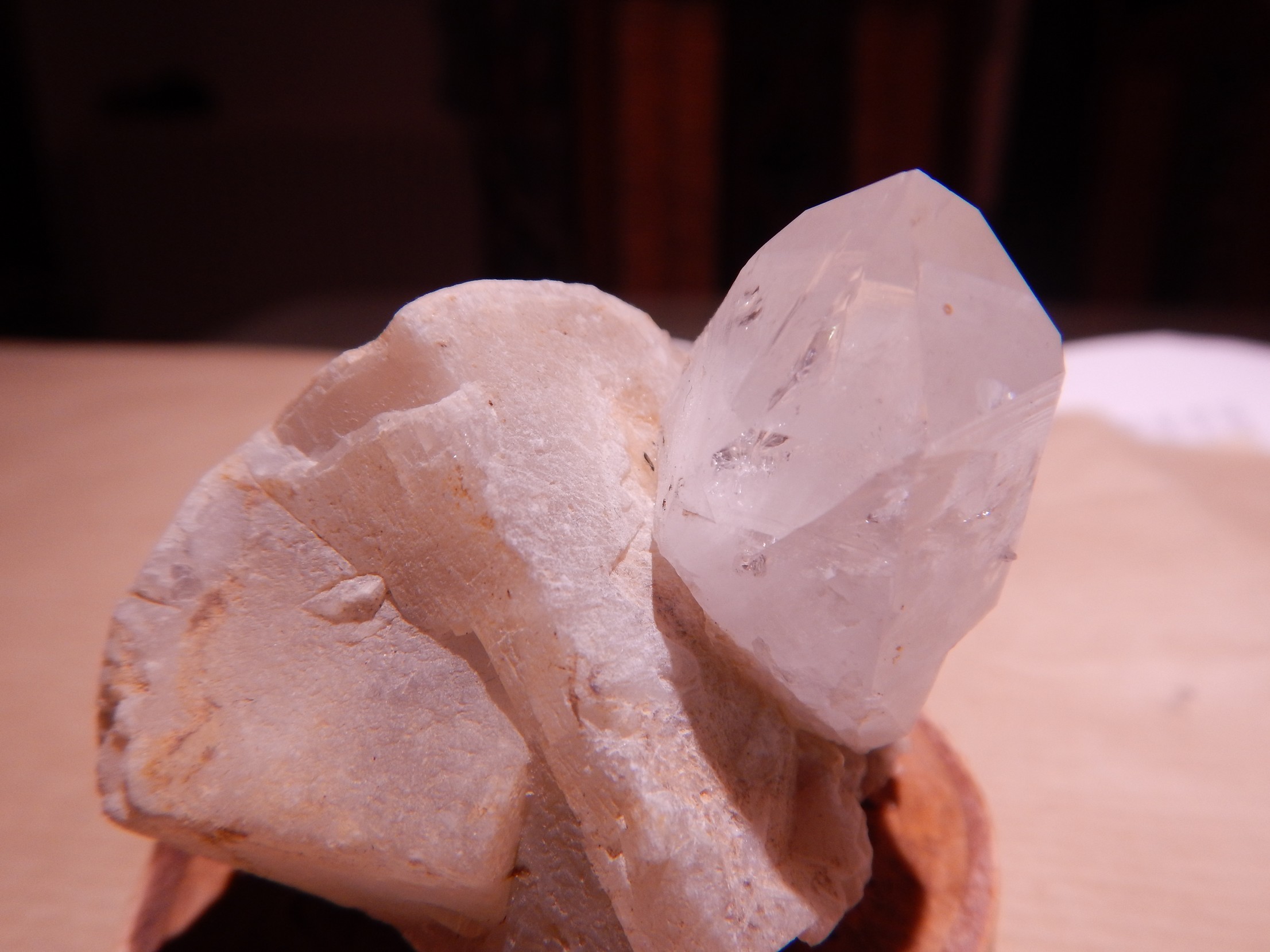 La dissociation du Calcium et du silicium (éléments abondants dans la croûte terrestre) et qui nous donnent (entre autre) la calcite et le quartz est toujours intriguant pour un amateur. "je t'aime moi non plus" Les modes de différenciations en filons à partir de sources hydrothermales sont bien renseignés et intuitif (P.T.T.)(Pression,température, temps) (photos Quartz-01). En tant qu'amateur, ni chimiste, ni physicien, ni biologiste la différentiation de ces deux éléments dans les terrains sédimentaires à partir de fossiles (autour et dans) reste une énigme. Enigme relancée lors de la découpe d'un stromatolithe du crétacé. Le disque diamant s'enfonçant aisément à la périphérie de la pièce et très difficilement en son centre, j'ai cru à un cœur de silex (photos Strom 01 à 03) et effectivement les éclats de la partie centrale rayent le verre. La densité de la pièce est de 2.50 à 2.60. La texture centrale pourrait néanmoins s'apparenter plus à un grès qu'à un silex En observant l'échantillon l'on constate que chaque couche (d'ex cyanobactéries) passe imperturbablement en partant de l'extérieur d'une charge prédominante en calcium à une charge prédominante en silice vers le centre. Chaque couche s'est pourtant constituée durant la même période (année probablement) à la même température et à la même pression. Les variations de concentration peuvent (à mon humble avis) avoir deux explications : - biologique: les individus de la colonie de cyanobactérie réagissent différemment en fonction de ???? - Chimique: la partie extérieure a subit une altération physico chimique et des ions silicium se sont évadés ??? Il faut également signaler dans ces terrains du crétacé supérieur la présence de spongiaires siliceux (100%) (photo BM 19) et d'hippurites en partie silicifiées (voir cristallisées)au centre à l'emplacement des anciens tissus mous et aux jointures ( Photos BM 09 et 12 ) Votre avis nous intéresse ???