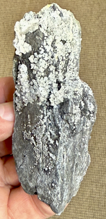 Salmiac en petits octaèdres sur un schiste [90mm] Crassier du Couriot, Saint Etienne Ce minéral est ici le produit d'une houillère embrasée Découverte personnelle en 1973 -