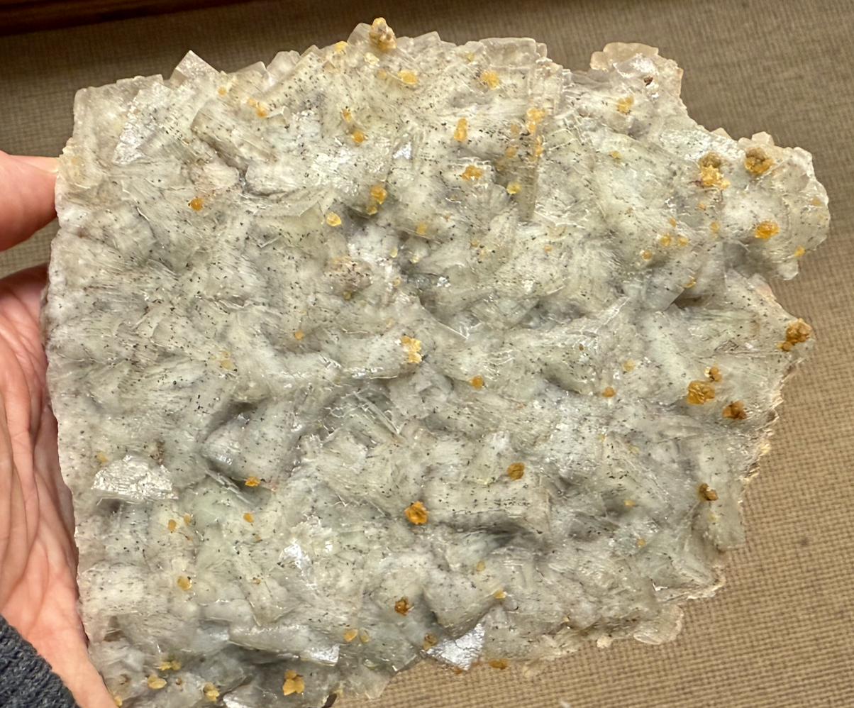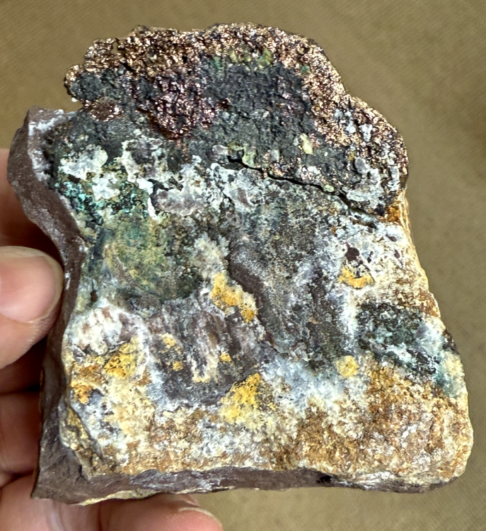 Pascal "La parnauite a été décrite en 1978 à Majuba Hill. Mari et Rostan indiquent en 1986 que l'espèce récoltée à Cap-Garonne était bien en cours d'étude lors de la publication de la parnauite, mais il n'est absolument pas question d'association de Cap-Garonne à la publication de la parnauite. Cap-Garonne n'est pas localité type de la parnauite, et il ne peut donc être question de cotype.". J'avais trouvé ce qui était alors une nouvelle espèce, et Sarp était très ralenti par des problèmes récurrents de chimie. Quand il a envoyé son papier à l'IMA, les Américains qui avaient alors proposé la nouvelle espèce quelques semaines plutôt, ont refusé une quelconque association avec Halil qui n'était pas très connu, et l'ont jeté… Halil en est resté là, avec sa frustration, après des mois de travail, car il faut savoir que c'était infiniment plus difficile de faire une nouvelle espèce à l'époque que maintenant. Il faisait aussi la structure avec 6 mois de calculs à la main. A propos de la facilité actuelle, des amis qui en ont des dizaines sous le coude… Sans parler de la machine du Carnegie qui fait (presque) tout, tout seul. La description aurait pu être intégrée, ce qui avait été le cas pour la mcphersonite que j'avais trouvé à l'Argentolle, où les Écossais avaient écrit quelques semaines plutôt et avait accepté la participation de Sarp dans le papier initial... C'est pour cela que j'ai écrit cotype, j'aurai du écrire cotype avorté du fait du non fair play des Américains. C'est aussi la "première espèce nouvelle" repérée à La Garonne… ça s'arrose 🍾 Par ailleurs à titre perso, comme collectionneur amateur, j'ai toujours eu pour règle de ne pas être associé à une quelconque publication d'une nouvelle espèce que j'avais récolté, n'en ayant pas besoin, ni sur le plan intellectuel, ni sur le plan carrière. Zeunérite en petites lamelles avec peut-être de la Duftite (?). [90mm] Ancien spécimen, Anc. coll. Béhier -