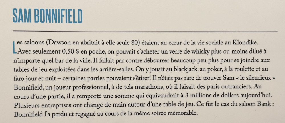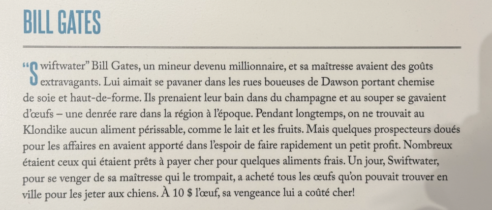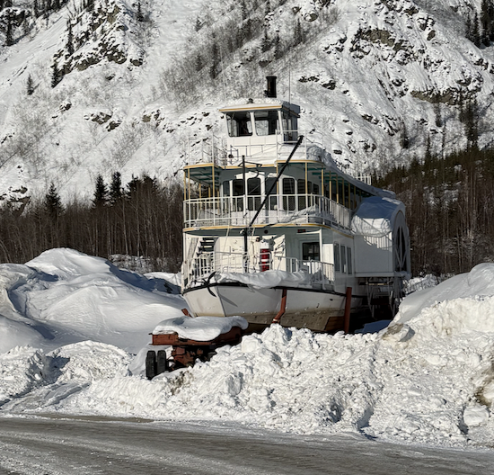 Les fameux bateaux qui permirent de remonter la whitehorse ou la yukon aux chercheurs d'or sans mourir en utilisant le chemin de Skagway. Le ferry pour traverser la Yukon l'été … l'hiver c'est direct sur la banquise Contre toute attente Dawson City est doté d'un magnifique musée sur la ruée vers l'or, entiérement sociologique et non pas géologique pour un sous… On l'a retrouvé, caché à Dawson après l'affaire Epstein ! -