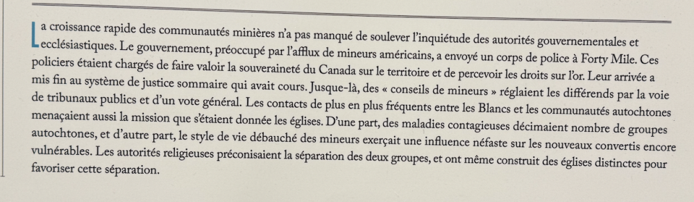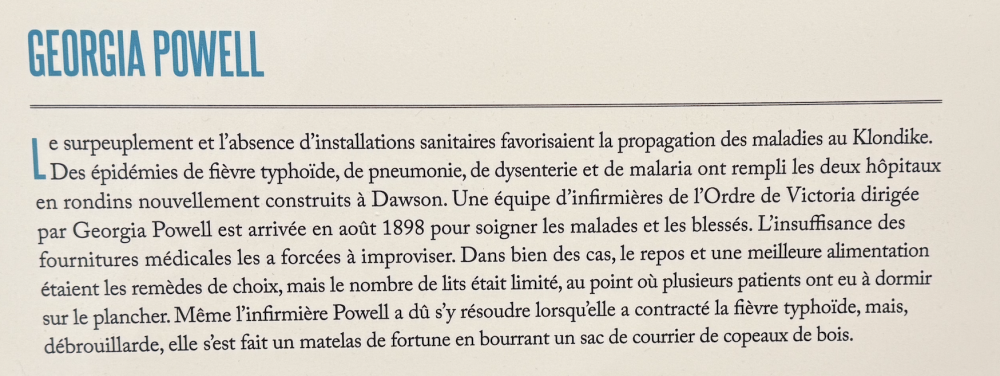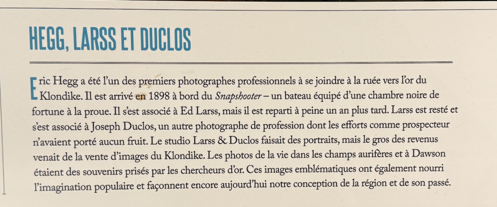 En route pour Dawson ! La Cité de Dawson est fondée en janvier 1897 par Joseph Ladue, qui la nomme ainsi en l'honneur du géologue canadien George Mercer Dawson à la demande de William Ogilvie. George Dawson avait exploré la région en 1887. Dawson est choisie comme capitale du Yukon à sa création en 1898, et le demeure jusqu'en 1952, remplacée par Whitehorse. vue d'avion sur les 650 km de la route Whitehorse - Dawson ( en voiture) Les draguages modernes vus d'avion aux alentours de Dawson. Mes Photos ne leur rendent pas justice au niveau de leur ampleur… Ils ont sans doute repris les draguages anciens. Je réside par hasard au Downtown Hotel, hôtel et attraction locale célèbre pour son Sourtoe Cocktail, mais date oblige, le bar est fermé ! Les rues principales, il ne fait que -15°C. Certains habitants se déplacent en snowmobile. En 2026 En 1900 Les escaliers du Downtown Hotel -