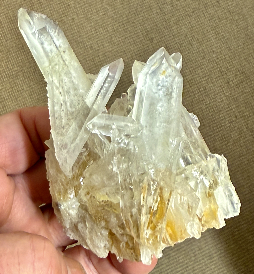 Quartz hyalin habitus dauphiné, macles de La Gardette. [100mm] La structure en fil à plomb est bien visible. Les Deux-Alpes -