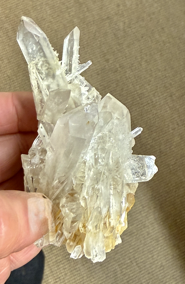 Quartz habitus dauphiné, flottant et un peu chlorité [80mm] Le Borgeaud, Martigny-Combe Cristallier : Roger May -