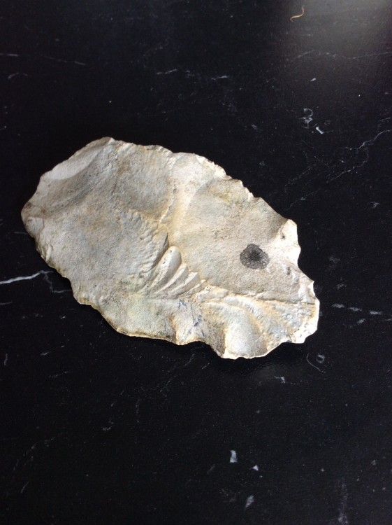 Bonjour à Tous, Au début j'ai juste demandé si certains pensent que l'on peut voir avec toutes ses cassures conchoïdales des traces de TAILLE sur cet objet (de la taille sur autre chose que du silex...). Bien sur ce prononcer sur "la taille" d'un objet (c'est pour cela qu'il y a autant de photos...) sans connaitre la nature de la matière ne semble pas concevable... Donc si c'est du plastoc, c'est moderne : - Alors TOUTES les cassures sont donc "naturelles" ?? ( celles du dessus dues a des chocs au moment du transport dans cette rivière torrentielle OK, MAIS "l'e morceau" aurait du être complètement broyé par le transport au milieu des cailloux, sur une longue distance ...). - La forme : encore un hasard de la nature (J'ai brûlé un peu le bout de la pointe pour voir : c'est pas comme du plastoc...), ET avec une prise en main on se rend mieux compte que c'est bien adapté... - Un signe en petit caractère bien visible dessous avec une pointe de flèche !! : Graver un si petit "signe" à la main sur cet insignifiant objet n'a pas de sens non plus ! - La fluorescence ... - l'aspect Général et l'endroit du ramassage.... Quant à l'analyse : avec ses mêmes photos "le scientifique" a voulu un échantillon...j'ai eu l'occasion d'échanger deux mails pour demander s'il aller faire cette analyse : il m'a dit oui, mais n'a pas dit quand (c'est une façon de procéder qui me déconcerte !!) ??? Si il avait constaté de visu que c'était du plastoc : il aurait simplement pu me le dire et l'histoire était finie...? Bon week-end, En tout cas la conclusion est que sur photo TOUS le monde pense que c'est du plastic..... Pas MOI qui l'ai en main.... Bon week-end à Tous, -