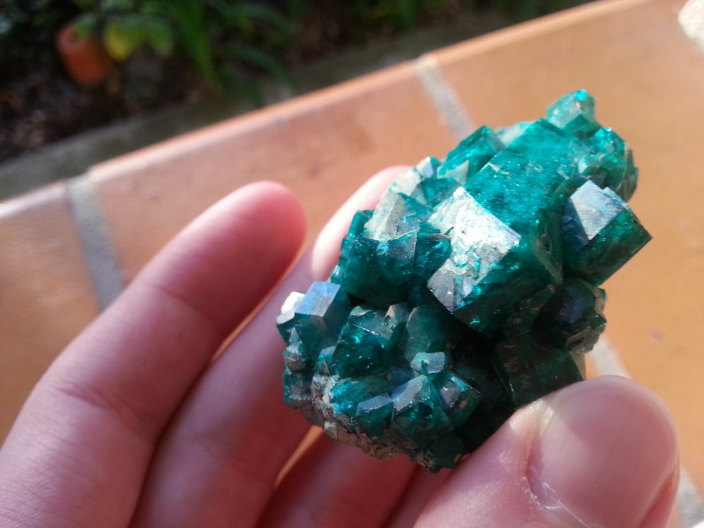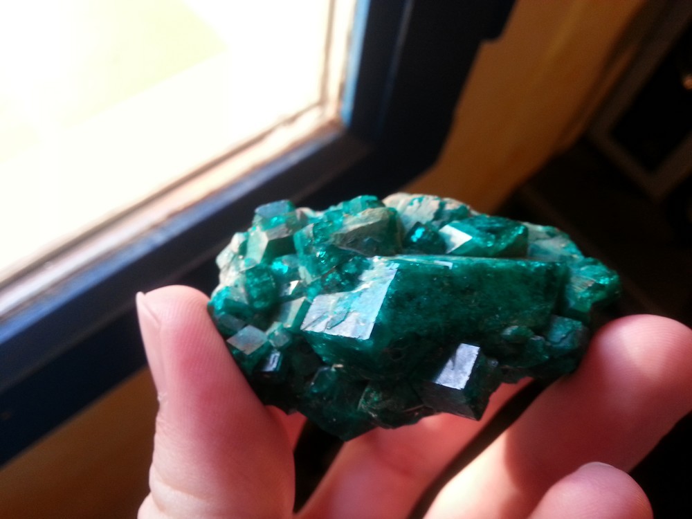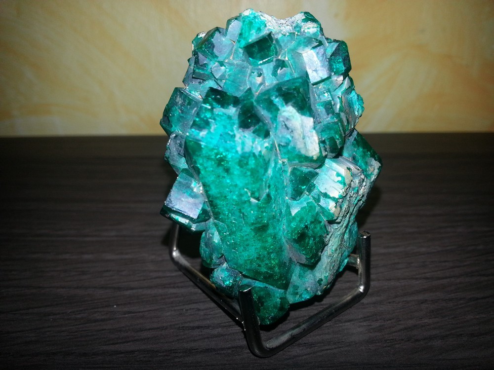 Bonjour, Tout d'abord est-ce bien une Dioptase ? Son poids est de 75gr. D'après vous quelle provenance (j'ai vu des photos de Dioptase de Namibie assez similaires) ? Et pouvez-vous me dire comment la nettoyer sans l'abimer car j'ai l'impression qu'elle ne la jamais été. Et enfin la cristallisation de cette Dioptase est-elle intéressante selon vous ? Merci d'avance ! (les photos ne rendent pas très bien)