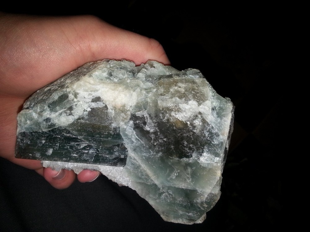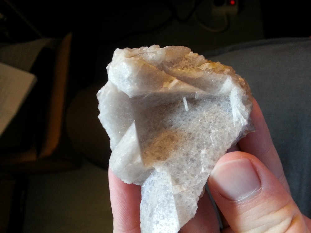 Voici les résultats des tests: Ne se raye pas au couteau, raye très facilement le verre et ne réagit pas à l'acide. J'en conclus donc que c'est bien un mélange de quartz avec inclusions de cristaux ? Comment pourrais-je les qualifier alors ? Quelques autres photos: -