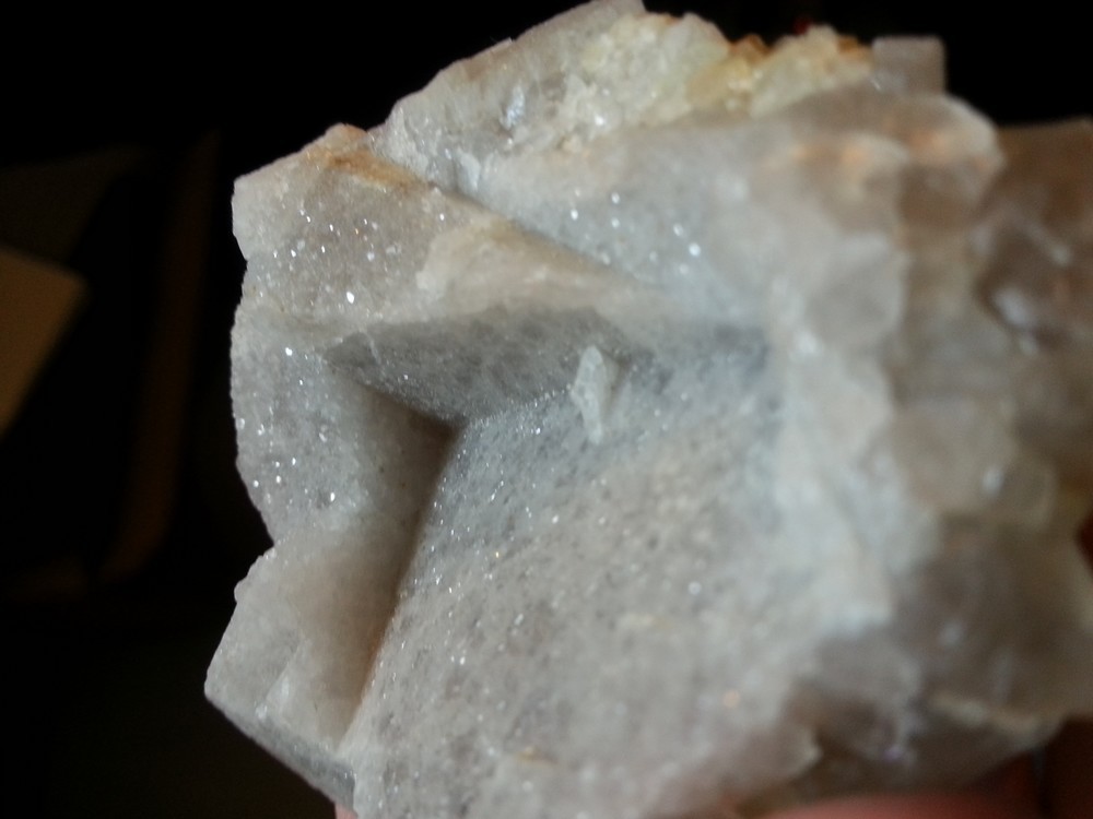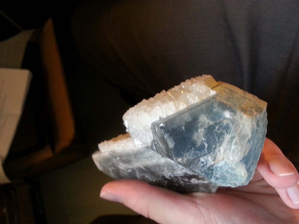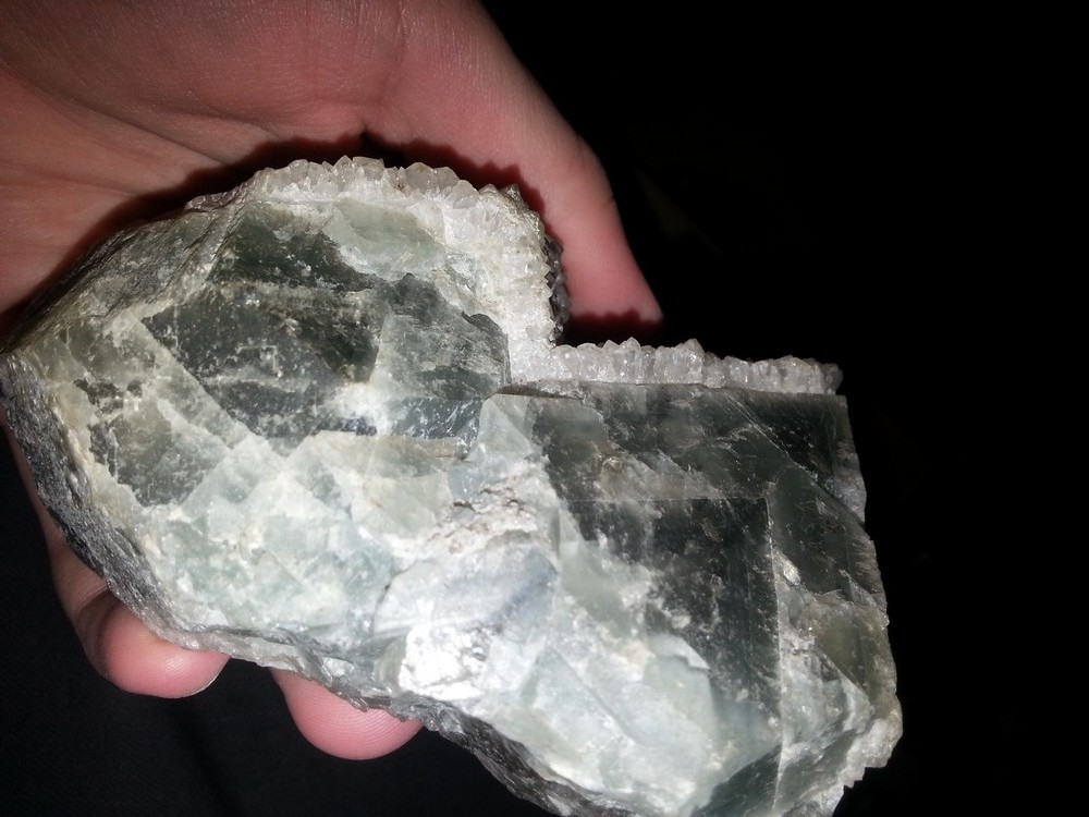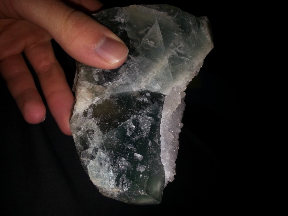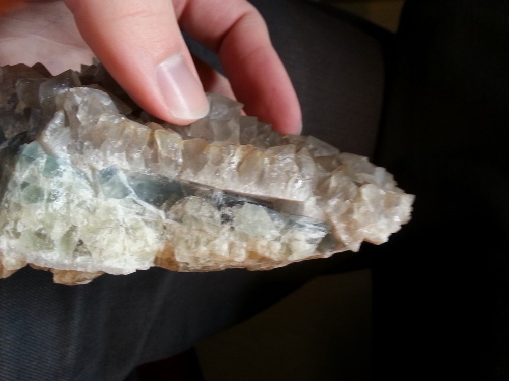 J'ajoute que lorsque j'appuie légèrement dessus je peux entendre des craquements et la couche de quartz à l'air de pouvoir sans trop forcer se décoller de la fluo. Après si vous pensez que c'est naturel tant mieux, je ne demande que ça ^^ mais c'est vrai que cela m'intrigue et que je ne trouve pas de photos de minéraux similaires avec des démarcations comme celles-ci sur le net. Si vous avez des photos de quartz sur fluo semblable j'aimerais bien les voir :) -