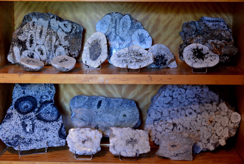 5. Quelques photos de ma collection exposer, pour partager. Image 7293 granite orb de La Faye Creuse Image 7294 en haut granite orb du moulin de chatenet Creuse En bas à gauche granite orb du mont magnet Australie et à droite granite orb de La lozère Image 7295 en haut à gauche granite orb de Ploumanach Côte d'Armor à droite Diorite orb de Montemor o novo Portugal En bas gauche syenodiorite orb de Virvik Porvoo Finlande, au centre Gabbro orbiculaire du Chili et à droite diorite orb du Maroc Image 7296 en haut gauche 2 échantillons du gabbro orb de Loretto di Tallano Corse à droite gabbro orbiculaire de Santa Lucia di Tallano et à l'extrême droite devant une boule et 1 échantillon de diorite orb de Chosica Pérou En bas à gauche granite orb de Porspoder Finistère à gauche gabbro orb de Néouvielle Pyrénée Photo 7297 vue d'ensemble de ma collection exposée, car j'ai encore beaucoup d'échantillons non exposé dont une rhyolite orbs d'Afrique du sud entre autre. Désolé, mais visiblement vous n'avez pas les N° des images La 7293 et en haut et ensuite elle sont dans l'ordre Sur la 7293, j'ai oublié les boules d'hermanov Slovaquie en bas au centre