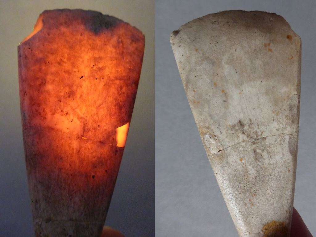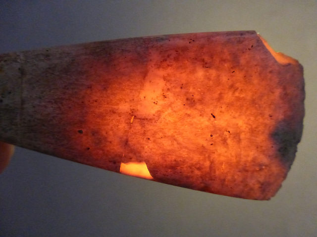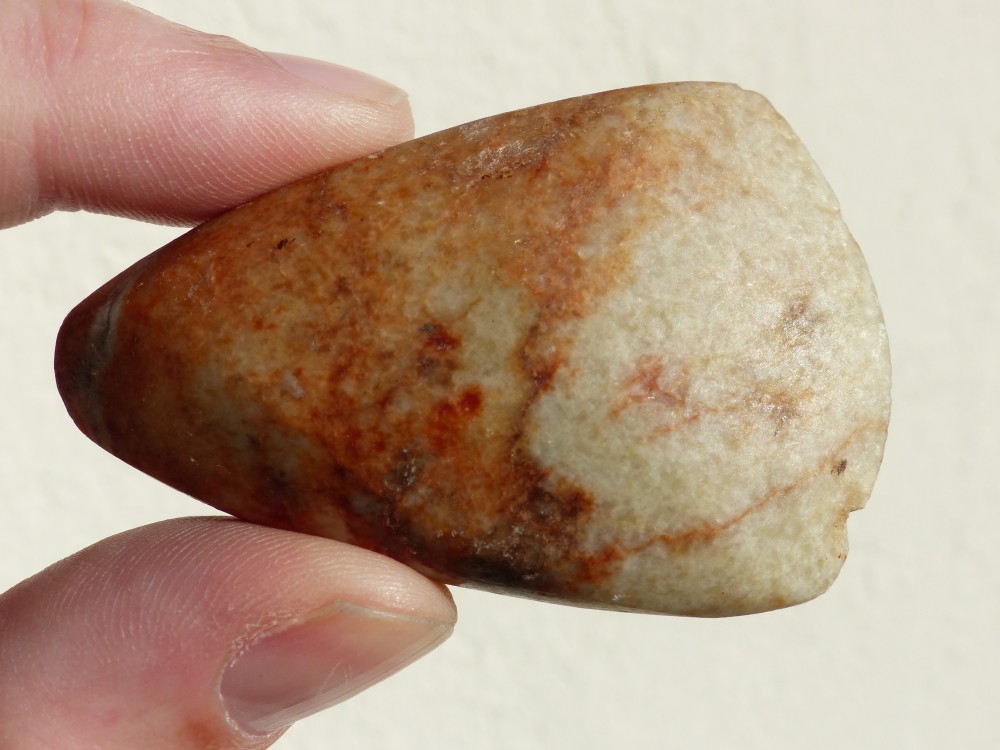 13. Bonjour, Une petite hache sans prétention... Mais la matière n'est pas fréquente. C'est une calcédoine de Peumerit dont la magie se révèle par transparence... Ces haches datent du Néolithique Ancien (Fin du 5° millénaire, début du 4° millénaire). Elles restent très rares ! C'est beaucoup mieux par transparence ! Manu