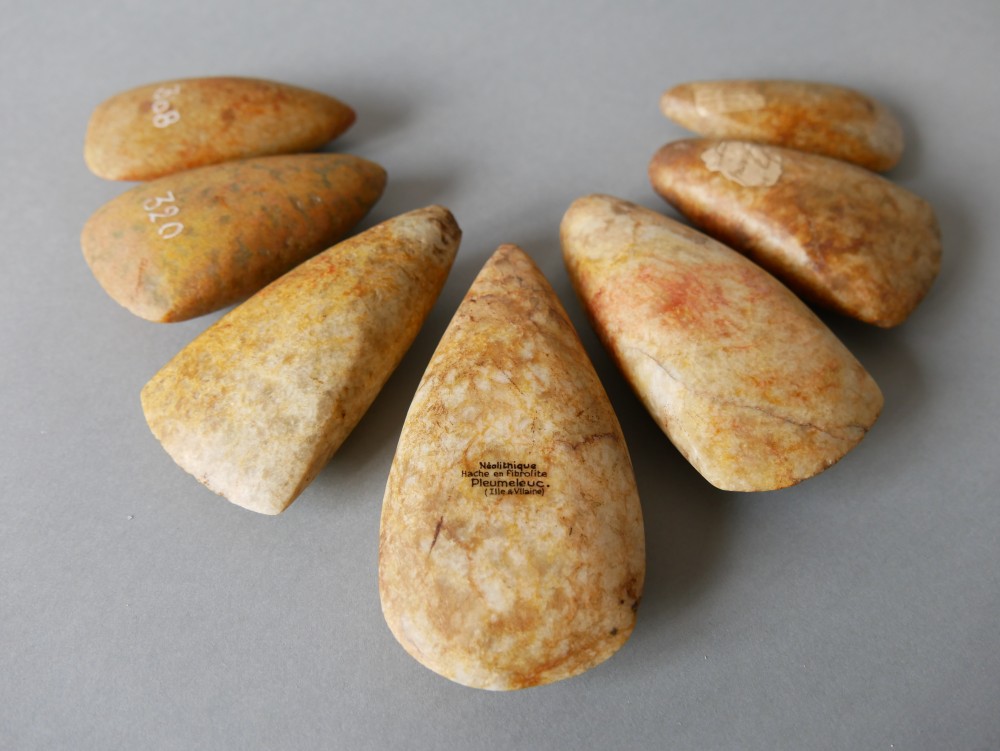 2. Surtout le "travail" d'un ami collectionneur qui écume les salles des ventes. Toutes ces haches sont signalées, déclarées et étudiées, y compris par spectroradiométrie chez Michel Errera. Les localisations pour la première photo : - 308 : Bretagne (sans précision) - Collection Guignard de Germond - 320 : Bretagne (sans précision) - Collection Guignard de Germond - Suivante : Bretagne - Pleumeleuc (35227) - Morbihan (56) - Plougasnou (29630) - Mendon (56) PS : désolé, je me suis trompé de forum (mais c'était pour "rebondir" sur une fibrolite signalée un peu plus haut)