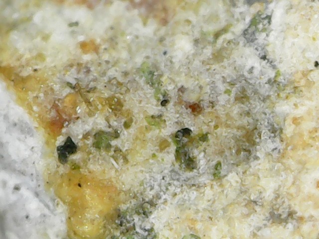 Avec un microscope numérique usb j'ai parcouru un des morceaux de la roche de long en large Peut-être est-il possible d'identifier quelques minéraux qui la composent? -