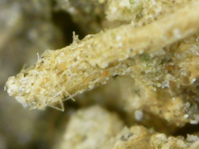 Bon , d'abord je vous remercie tous de vous pencher sur cette pierre . Comme je n'y connais pas grand chose je me documente grâce à vous tous. Je ne peux hélas pas faire plus sauf vous poster ces dernières photos en plus gros plans sur le petit morceau pris avec un smartphone car néophyte dans les minéraux je ne suis pas équipée pour ( Une scie pour faire des lamelles et un microscope et je n'ai ni les acides pour la tester). Peut-être que cela fera avancer le schmilblic ou pas. En tout cas un grand merci à tous pour votre aide. Les fils blanc que l'on voit sur la photo du haut sont des résidus de sopalin lorsque j'ai nettoyé la pierre. Ne pas oublier que c'était la seule pierre comme cela dans le coin que nous avons vu, nous étions deux et nous avons cherché dans le périmètre et n'en avions pas trouvé d'autres mais dans une forêt il est vrai que c'est vaste donc cela ne veut certainement rien dire et pourquoi cette pierre là plus qu'une autre m'a attirée l'oeil, je pensais que c'était du bois fossilisé au départ. Je viens d'immerger les deux échantillons, que j'avais laissés la nuit dans de l'anticalcaire ,dans un bol de vinaigre pur. On verra ce que cela donne mais pour l'instant aucune réaction. J'aurais, en vous lisant tous, tendance à penser que c'est une banale pierre en grès vu que cela vient des Yvelines. Encore une fois merci ! -