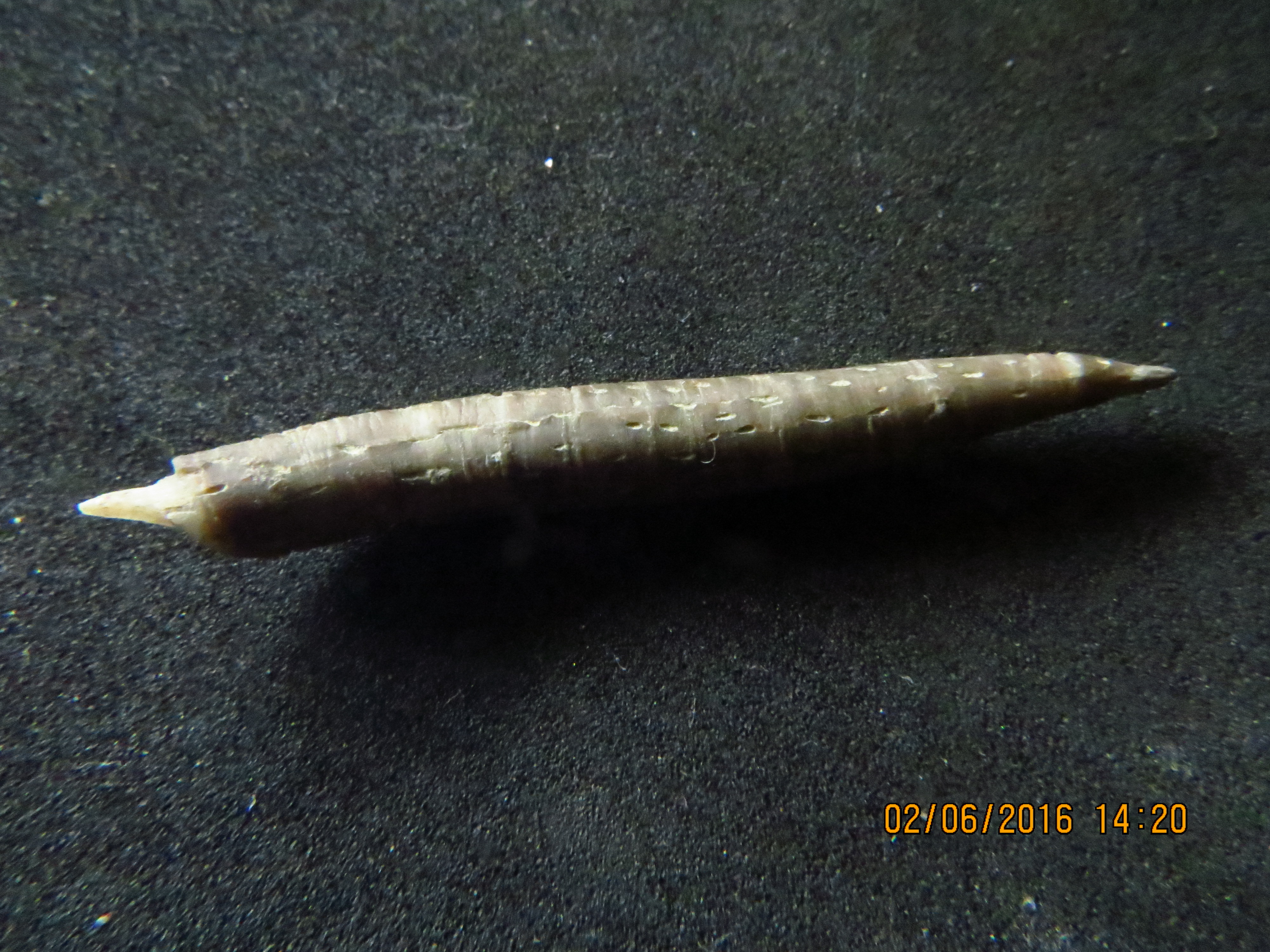 Comment se nomme ce petit fossile, que je suppose marin, trouvé en Drôme dans des marnes grises du côté de Verclause, marquées n6 sur la carte géologique. Dimensions: L 4,2 D 0,5 cm. Merci -