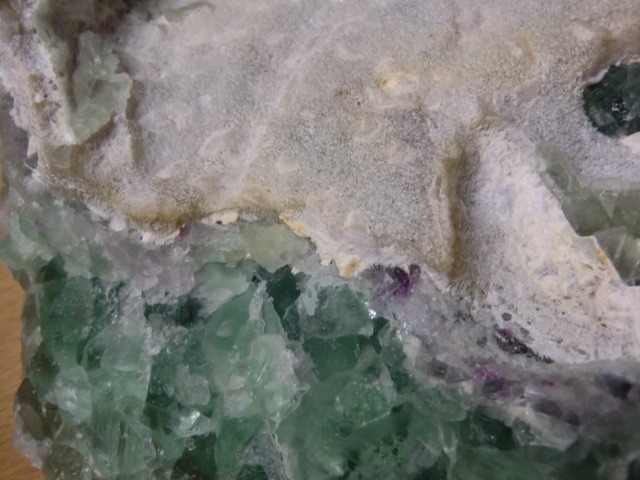 Novice ... cela veut dire que c'est un quartz à l'origine ( traité par un acide qui donne cet aspect FLUORINE ?!....) -