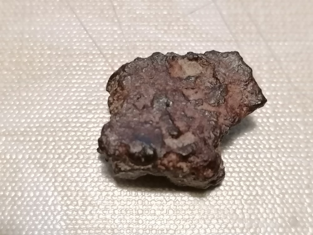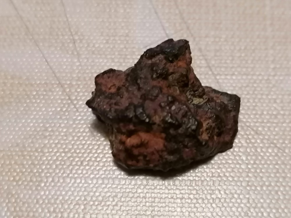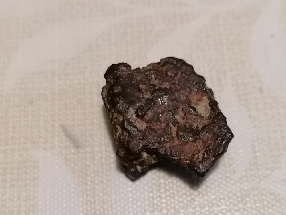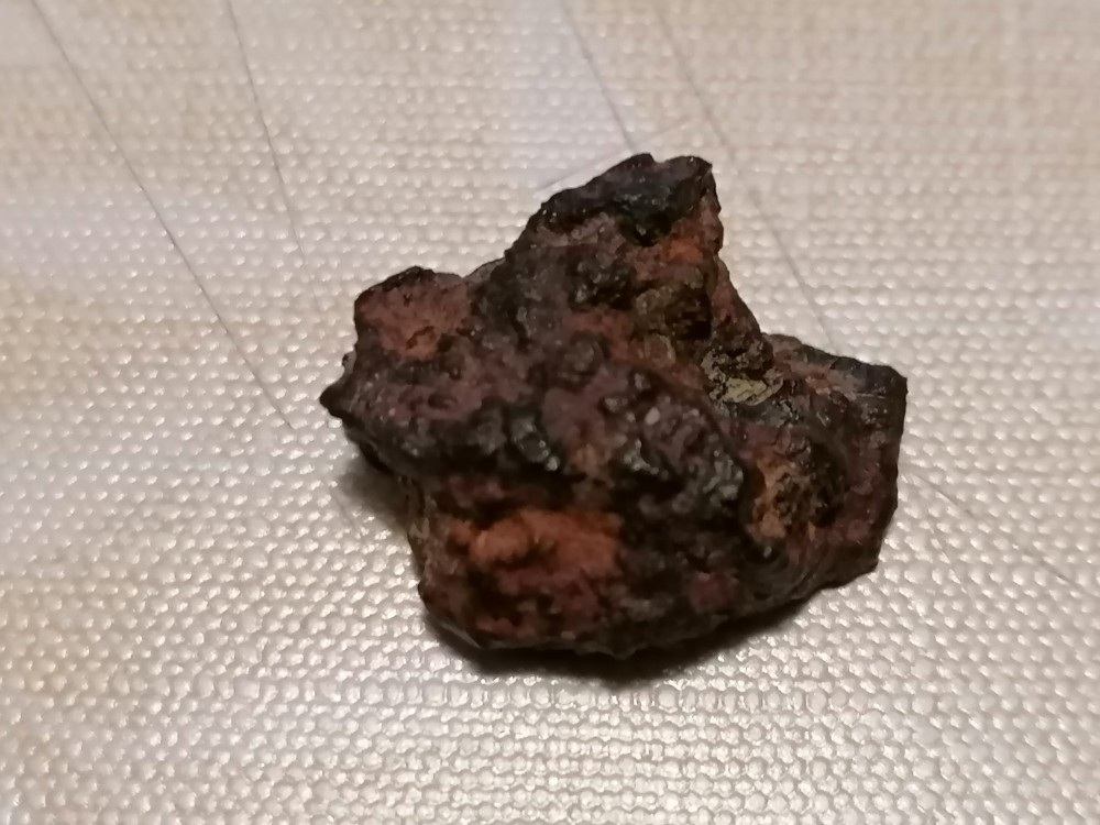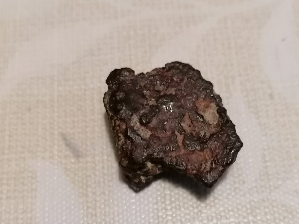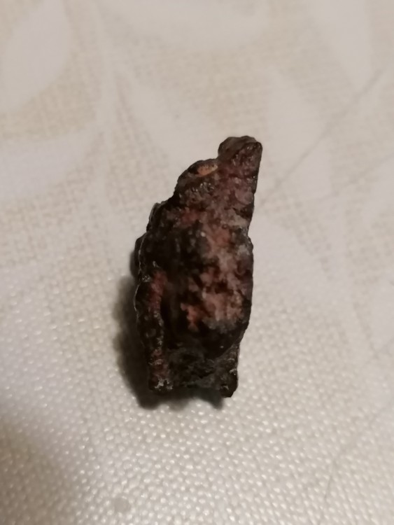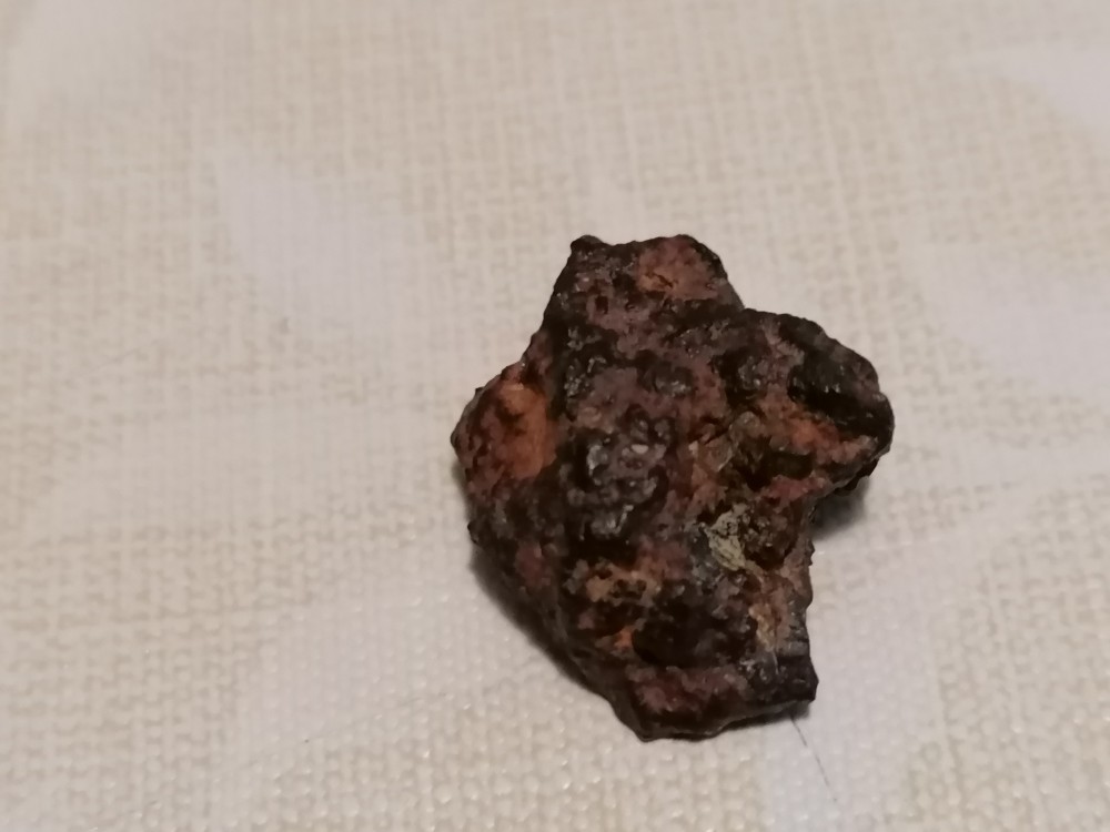 Bonjour à tous, j'ai besoin de vos lumières, en allant balader dans le Dévoluy à un col à 1600m, très à l'écart, je suis tombé sur un petit caillou de 1.6 cm qui ne ressemblait pas du tout au calcaire du site. Il réagit beaucoup à l'aimant, je ne sais pas la dureté mais il est lourd pour sa taille, il ne raye pas le verre, par contre sur une petite cassure on aperçoit une couleur plus claire à l'intérieur du caillou, peut il s'agir d'un résidu de fonderie, de fer rouillé ? ou autre ? J'ai pensé peut être une toute petite chondrite ou sidérite ? Merci à tous