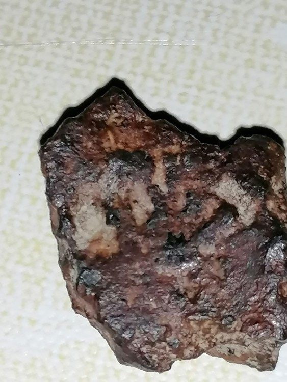 Bonjour à tous, De balade du côté de Carpentras, j'ai trouvé sur le coté d'un champ un morceau de caillou noir de 3cm qui a tout de suite attiré mon attention . J'ai donc sorti mon aimant afin de savoir si il y a du fer dedans , cela n'a pas loupé il à "collé" de suite... En le netoyant et en regardant plus attentivement, j'ai l'impression d'y voir une sorte de croute de fusion qui n'est pas présente a l'intérieur de la petite cassure. Le caillou n'est pas trés lourd car pas trés gros. En regardant un peu sur internet j'ai cru y voir quelques similitudes avec les chondrites... Vous en pensez quoi?* Merci à tous!!!