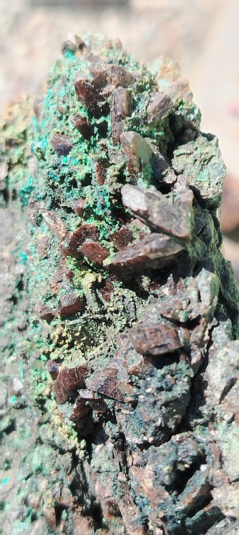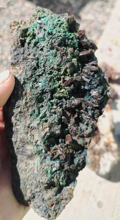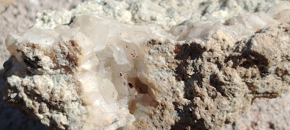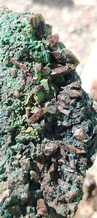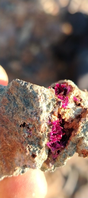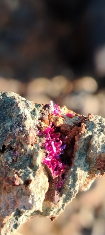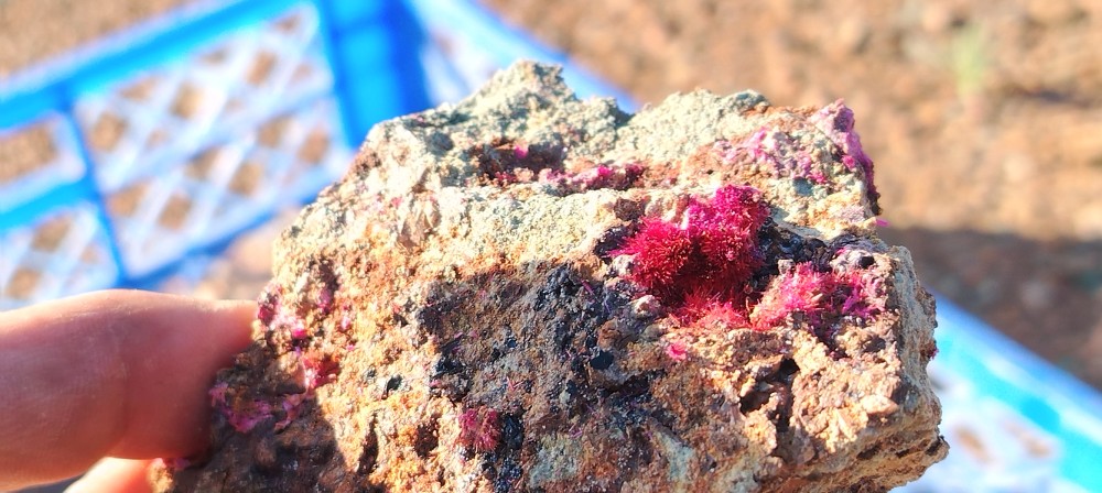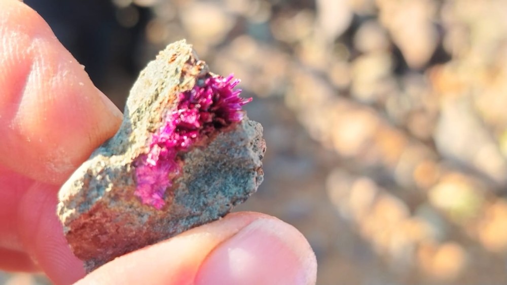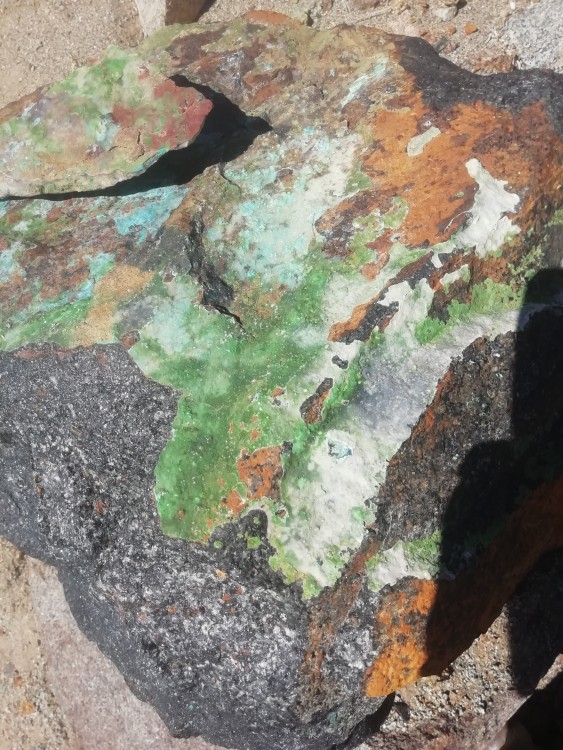 bonjour, Mina Rajos de California, connue pour ses Azurites, nous, on se contentera de quelques petites pièces de Linarite et Brochantite d'un fond de veine déjà exploité récemment, mais il y a encore de jolis restes a extraire, burin et massette, ce n'est pas vraiment ça, la matrice de quartz s'éclate, peut être avec mèches et perfo...Enfin, il en reste pas mal sur place. Ambiance; VID-20251008-WA0009.mp4 VID-20251008-WA0008.mp4 VID-20251008-WA0004.mp4 quelques pièces sorties; la loupe donne l'échelle; 1- linarite/brochantite zoom 2- 3- 4- 5-pointes de quartz encroutées 6- 7- 8_ 9_ 10- 11_et peut être deux aurichalcites, du versant d'en face;