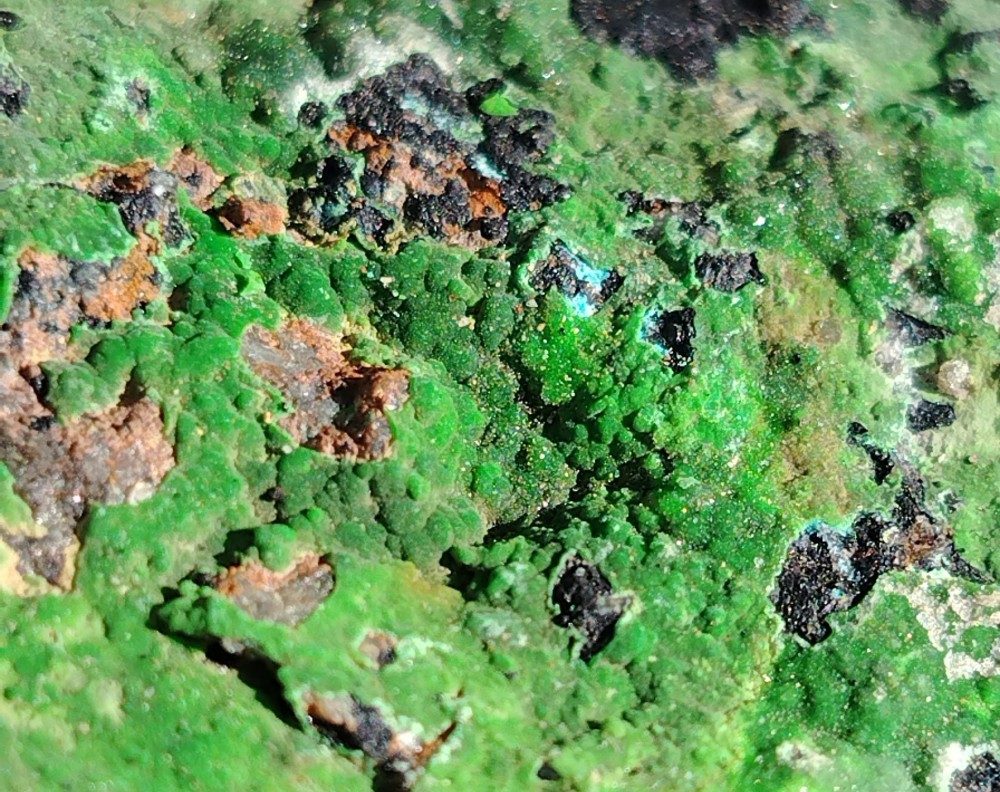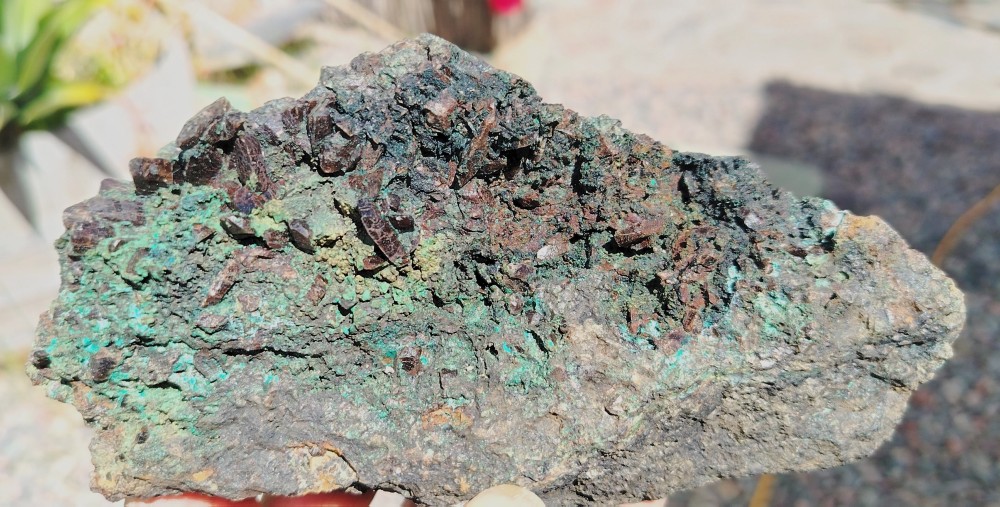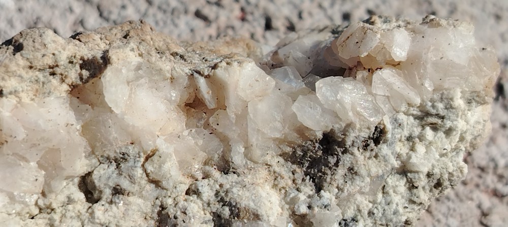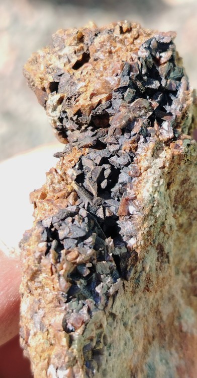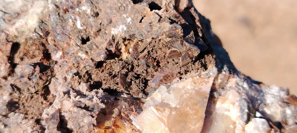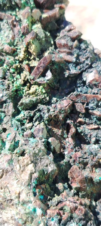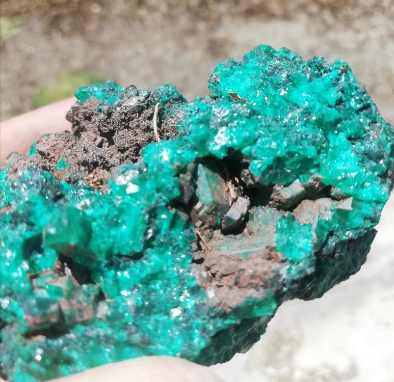 bonjour, Mina Rajos de California, connue pour ses Azurites, nous, on se contentera de quelques petites pièces de Linarite et Brochantite d'un fond de veine déjà exploité récemment, mais il y a encore de jolis restes a extraire, burin et massette, ce n'est pas vraiment ça, la matrice de quartz s'éclate, peut être avec mèches et perfo...Enfin, il en reste pas mal sur place. Ambiance; VID-20251008-WA0009.mp4 VID-20251008-WA0008.mp4 VID-20251008-WA0004.mp4 quelques pièces sorties; la loupe donne l'échelle; 1- linarite/brochantite zoom 2- 3- 4- 5-pointes de quartz encroutées 6- 7- 8_ 9_ 10- 11_et peut être deux aurichalcites, du versant d'en face;